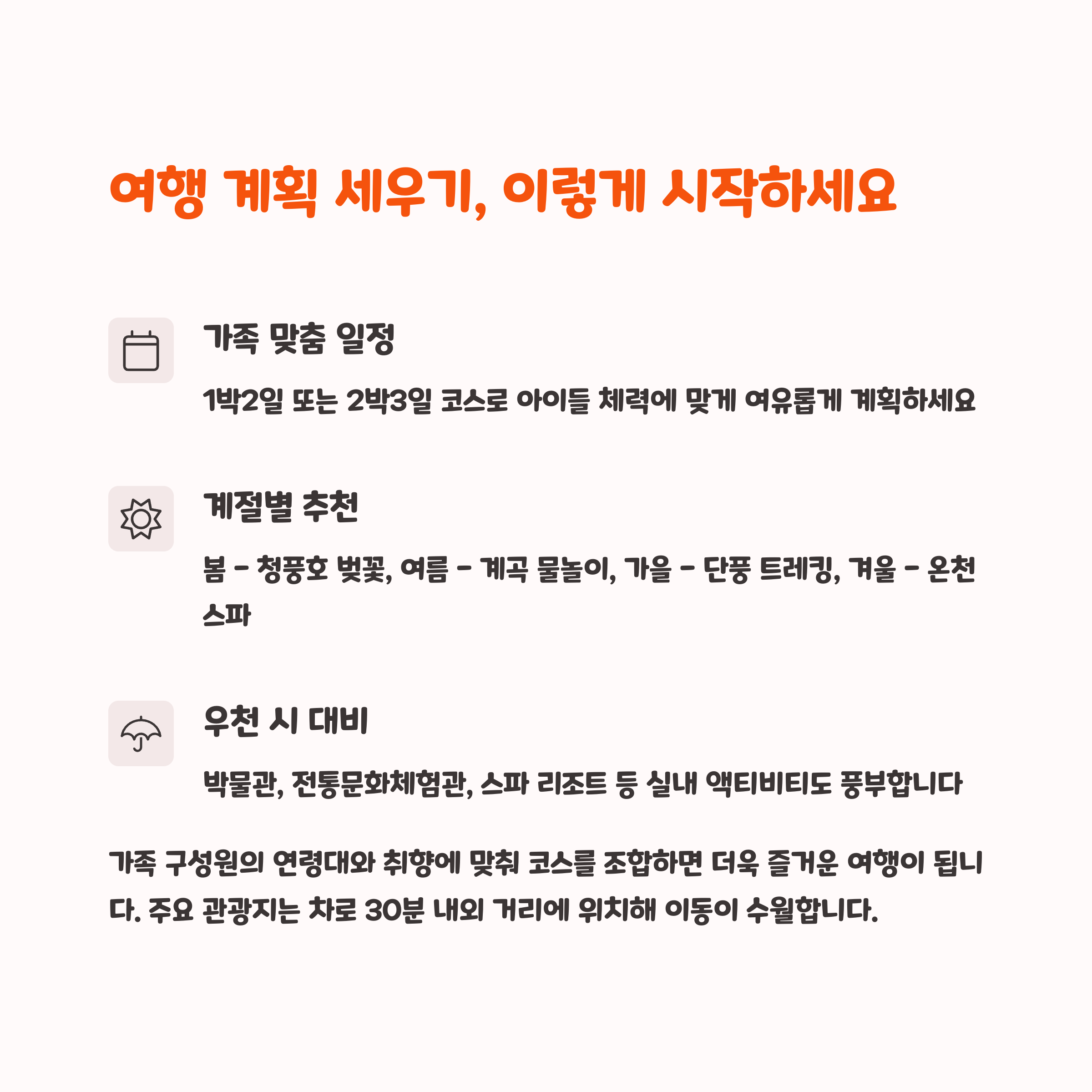 가족 여행을 준비할 때 가장 중요한 것은 코스 선정입니다