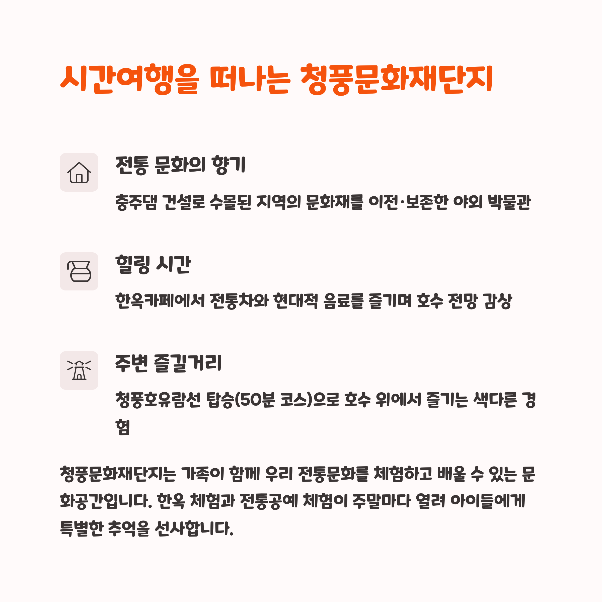 제천은 자연과 문화가 모두 풍성해 아이부터 어른까지 모두 만족할 수 있어요