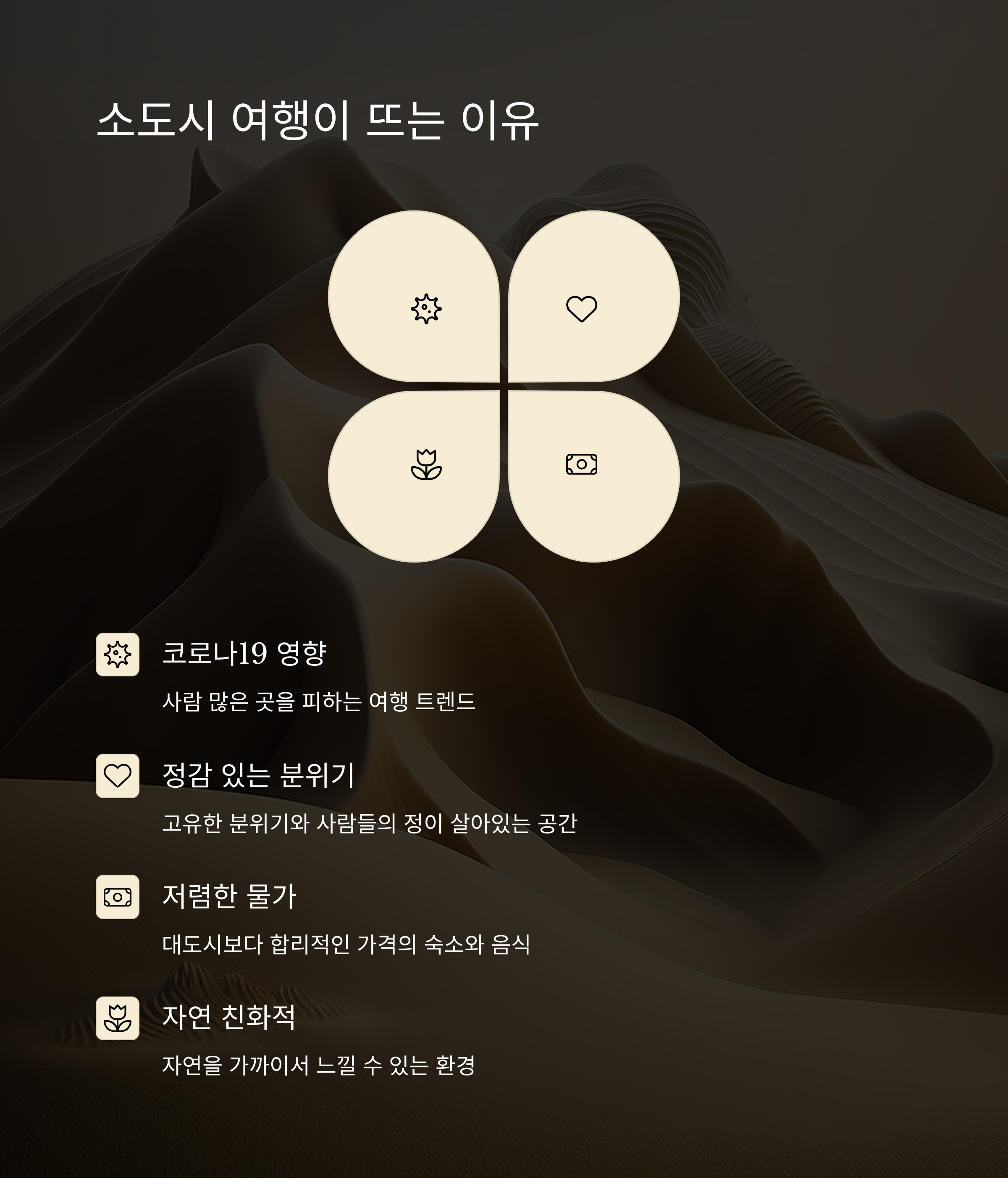 코로나19 이후 사람 많은 곳을 피하려는 여행 트렌드가 강해지면서 나만 알고 싶은 소도시의 매력이 주목받기 시작했어요.