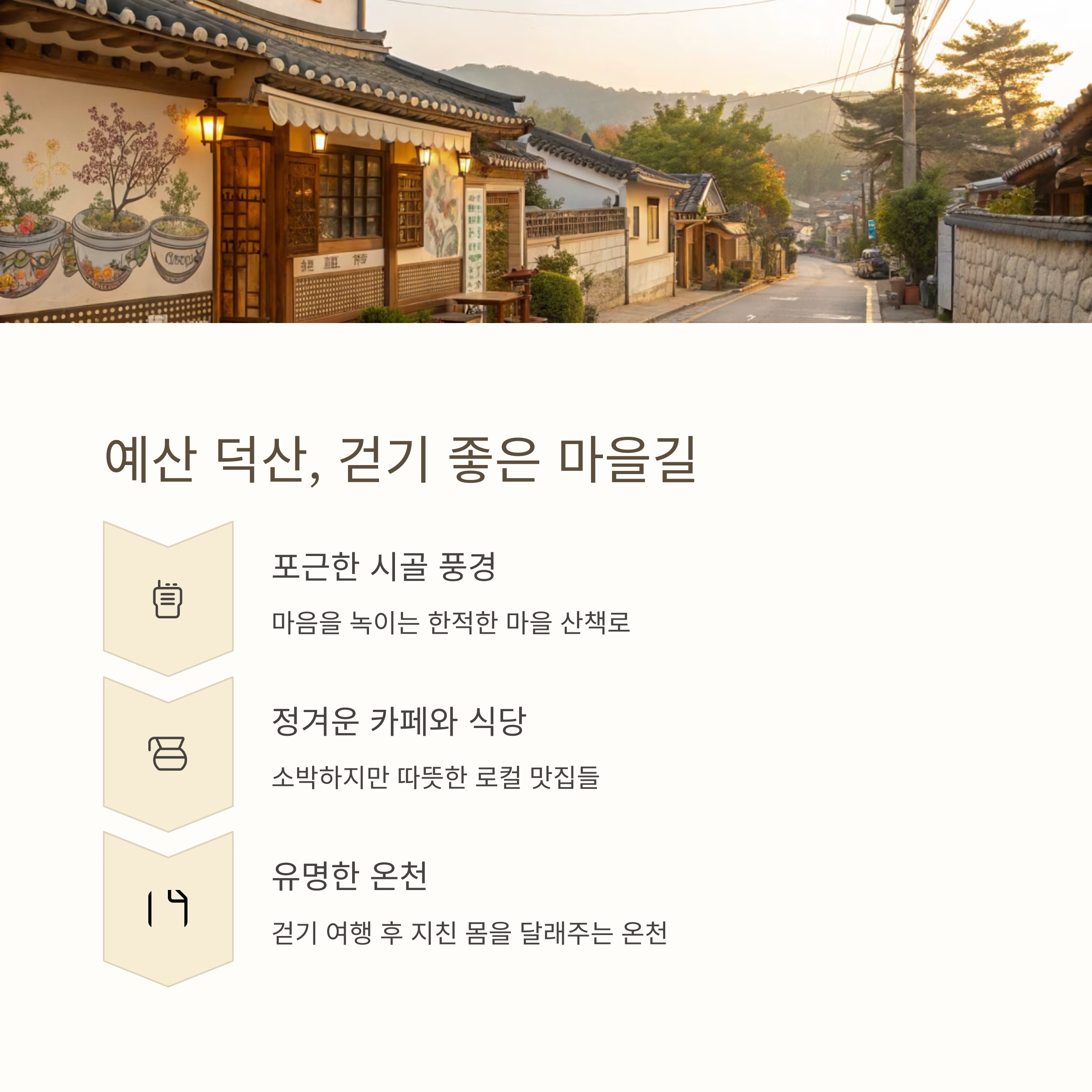 충청남도 예산군의 덕산은 온천으로 알려져 있지만, 저는 덕산읍성 근처의 마을길을 정말 좋아합니다.