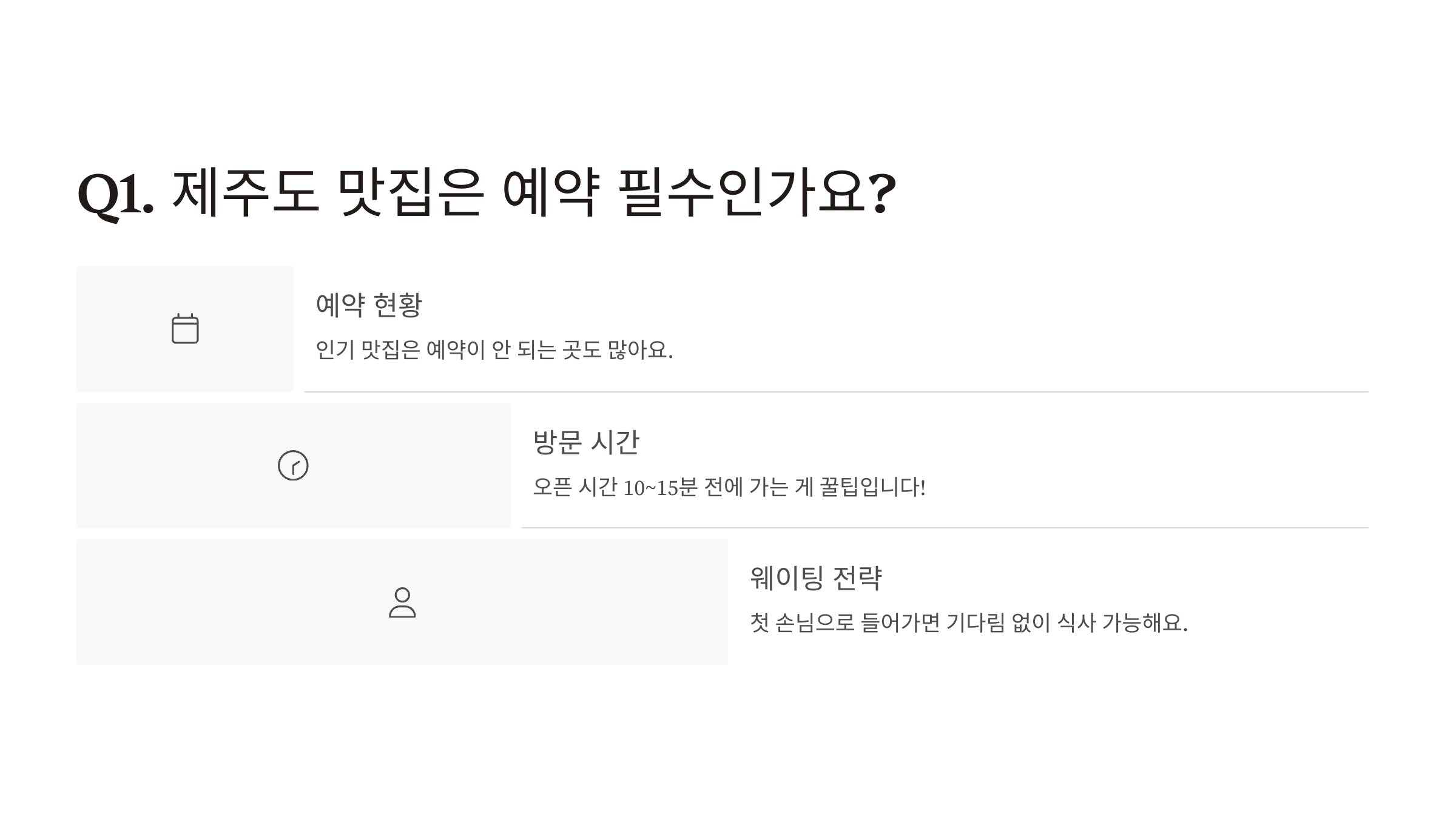 Q1. 제주도 맛집은 예약 필수인가요?