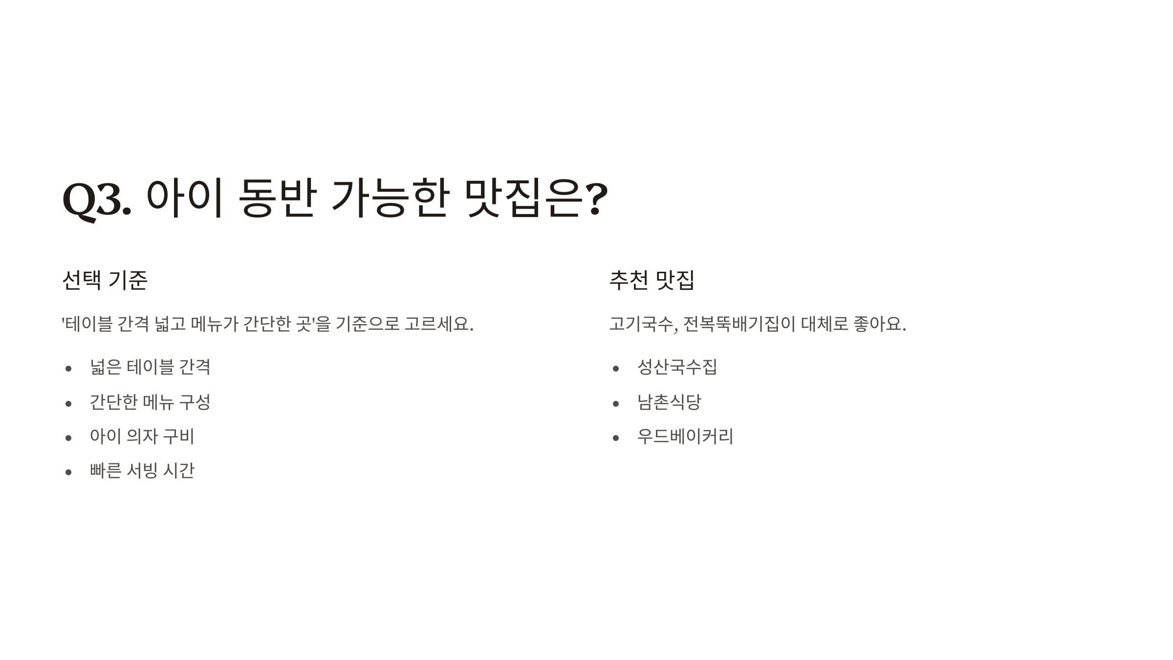 Q3. 아이 동반 가능한 맛집은?
