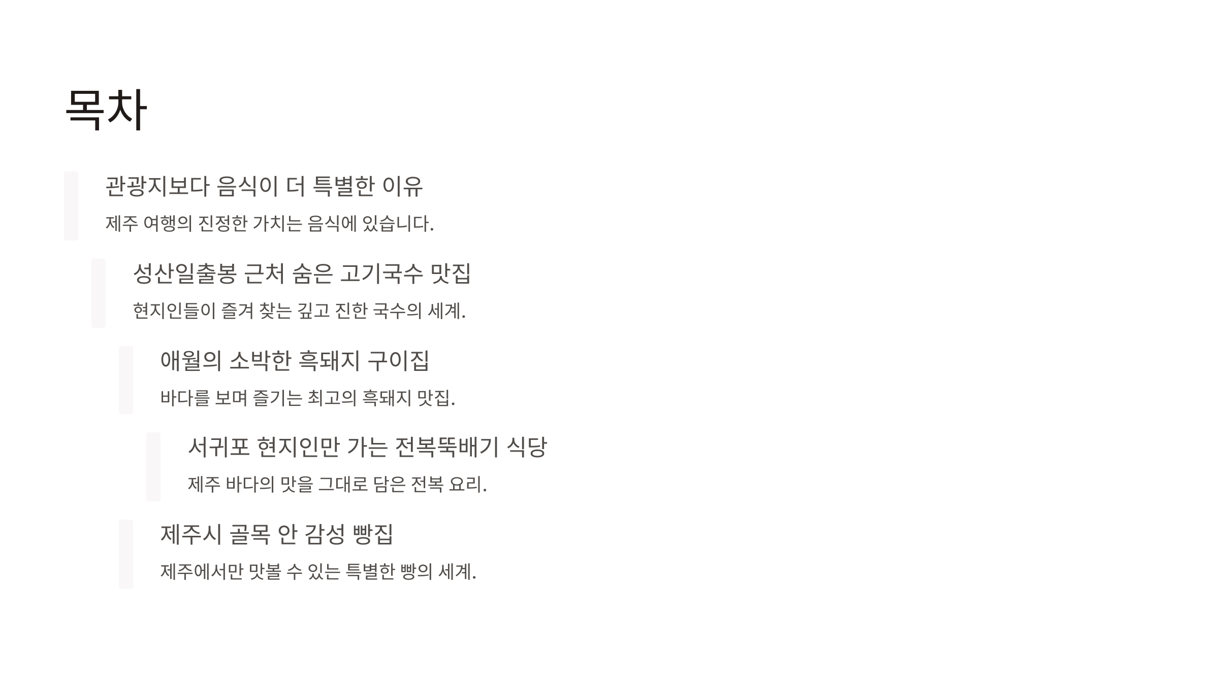 제주는 관광지로 유명하지만, 사실 진짜 제주를 느끼려면 식당부터 달라야 해요. 유명 프랜차이즈 말고, 골목 안 식당이나 외진 바닷가 근처 맛집을 찾아가면 분위기부터 음식까지 완전 달라지거든요. 저도 제주 여행 중 가장 감동받았던 순간이 음식 때문이었답니다. 진짜 제주 음식, 진짜 제주 사람, 진짜 제주의 시간을 만나게 되는 그곳들입니다!