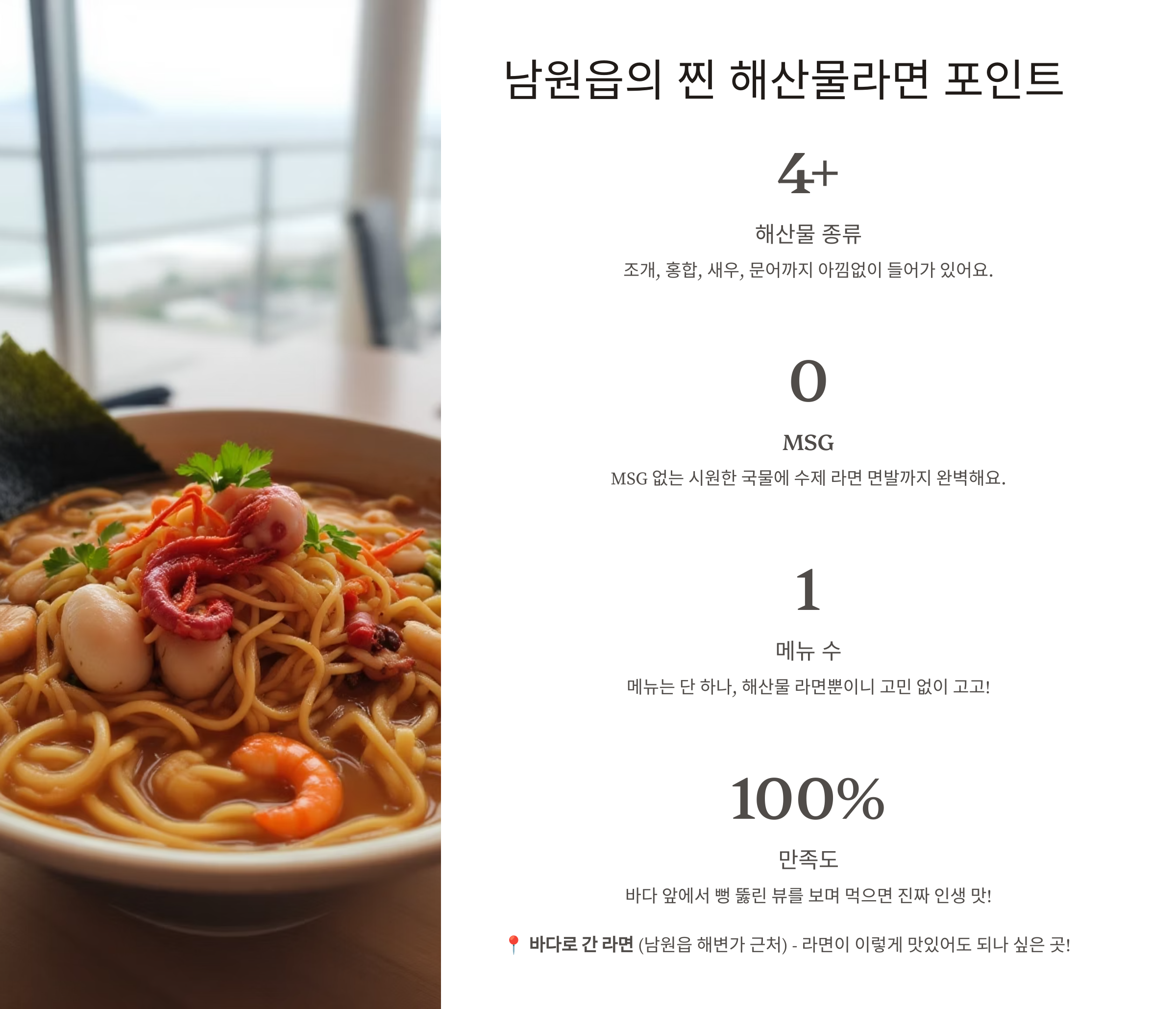 📍 바다로 간 라면 (남원읍 해변가 근처)