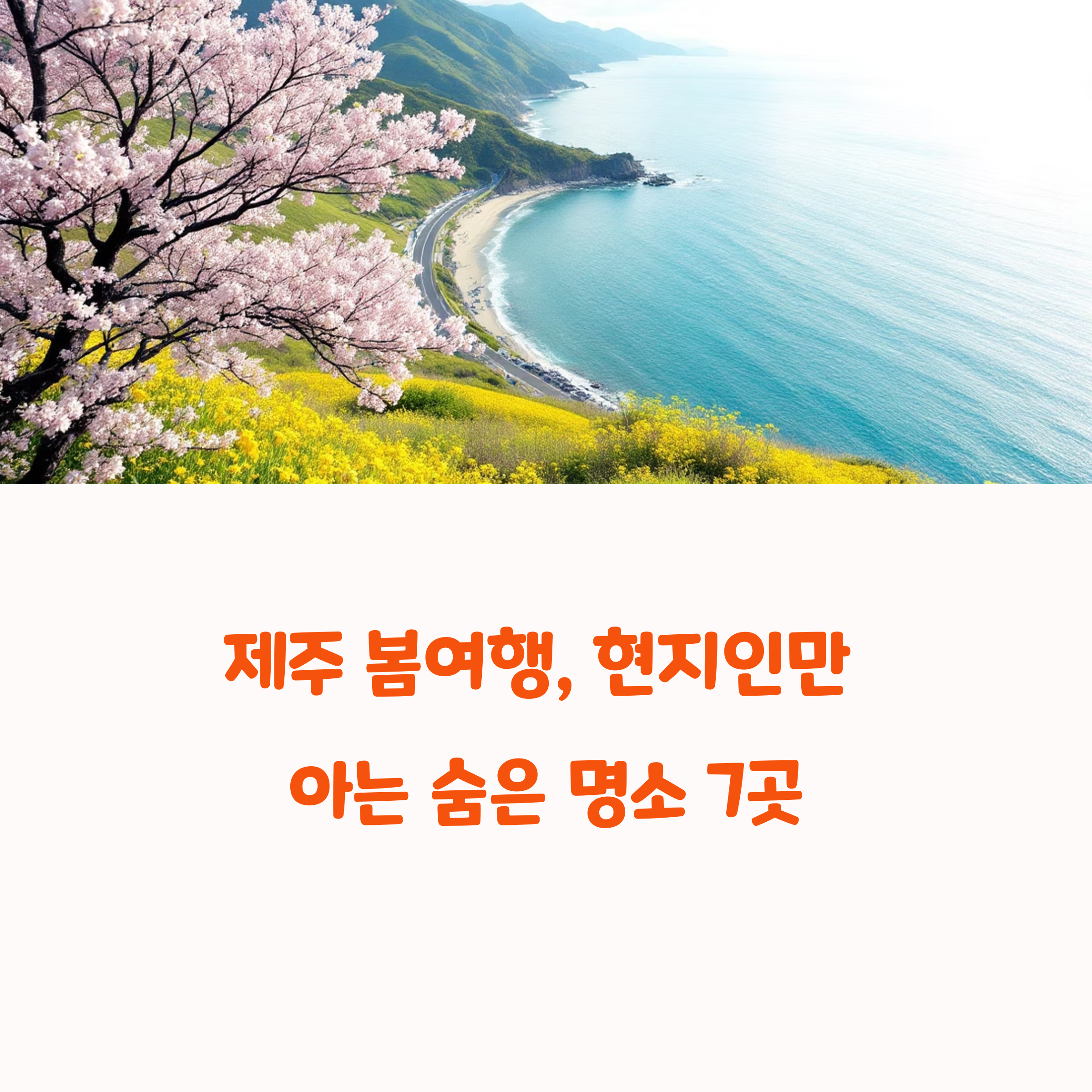 제주도는 사계절 내내 아름답지만, 그중에서도 봄은 가장 따뜻하고 평화로운 계절입니다. 벚꽃과 유채꽃이 만개하고, 푸른 바다와 푸른 하늘이 어우러져 그야말로 힐링의 시간. 하지만 유명 관광지는 늘 사람이 붐비죠. 이번 글에서는 현지인만 아는 제주도의 숨은 명소 7곳을 소개합니다. 조용하고 감성적인 장소에서 진짜 제주를 느끼고 싶다면 지금 이 리스트를 주목해 주세요.