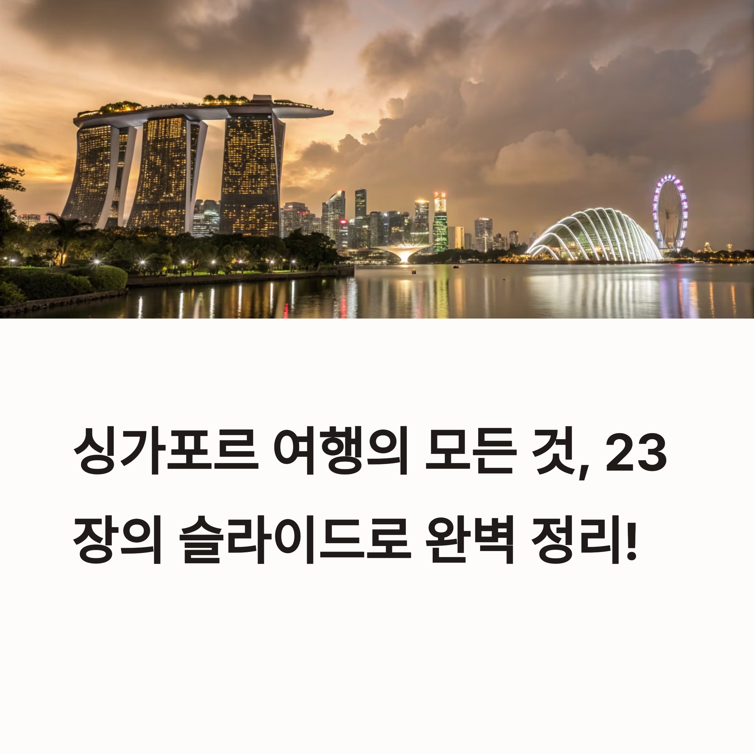 여기에서는 싱가포르 자유여행 추천 코스와 여행을 더욱 즐겁게 만들어줄 꿀팁을 소개합니다.