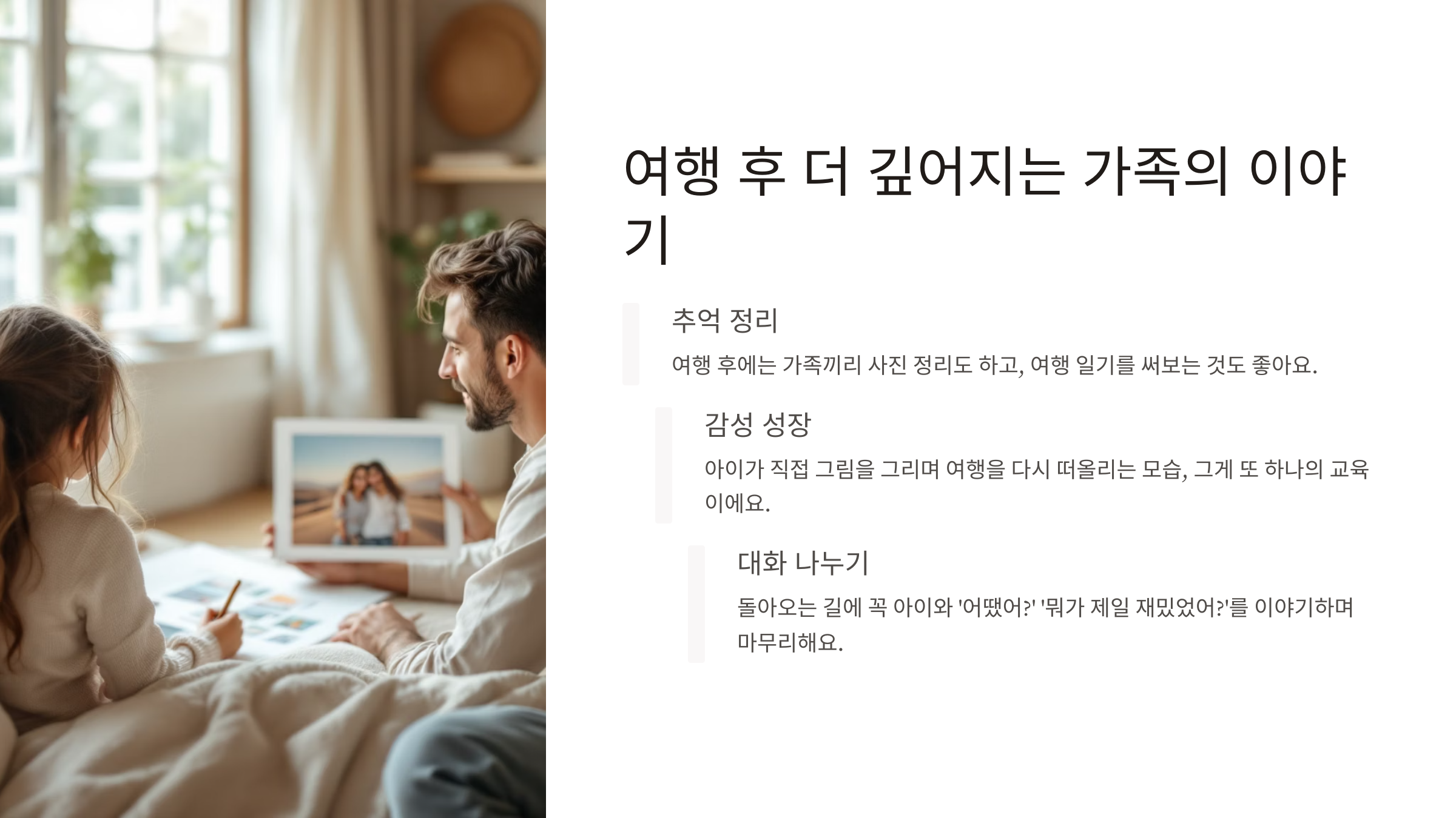 - 여행 후 더 깊어지는 가족의 이야기