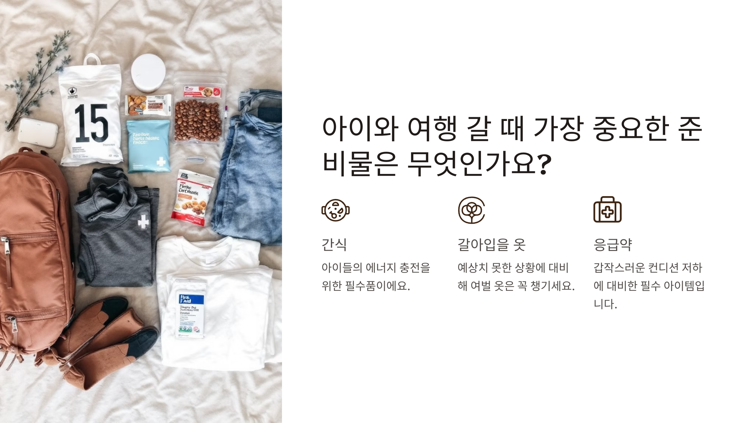 Q1. 아이와 여행 갈 때 가장 중요한 준비물은 무엇인가요?