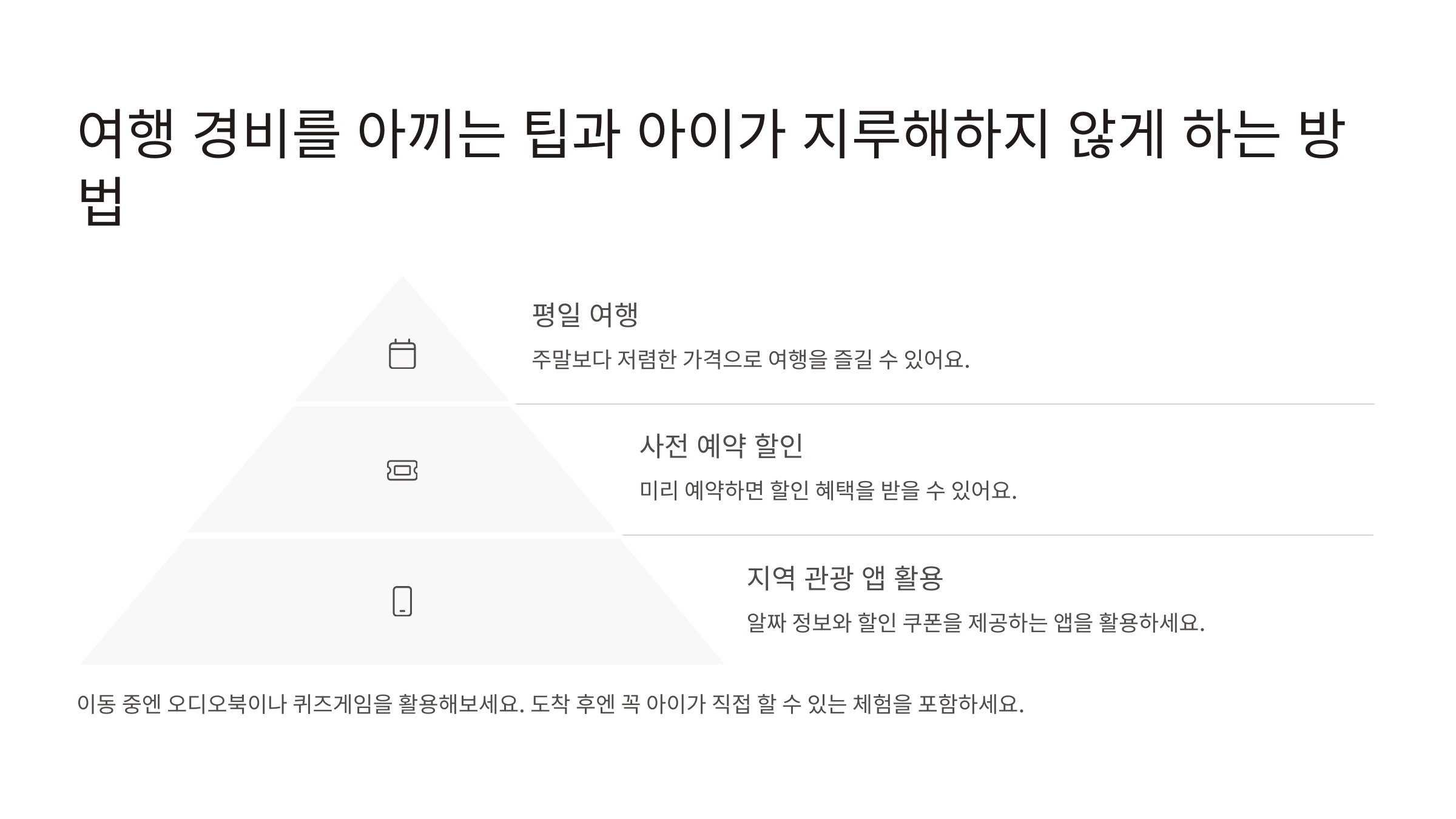 👉 이동 중엔 오디오북이나 퀴즈게임을 활용해보세요. 도착 후엔 꼭 아이가 직접 할 수 있는 체험을 포함하세요.