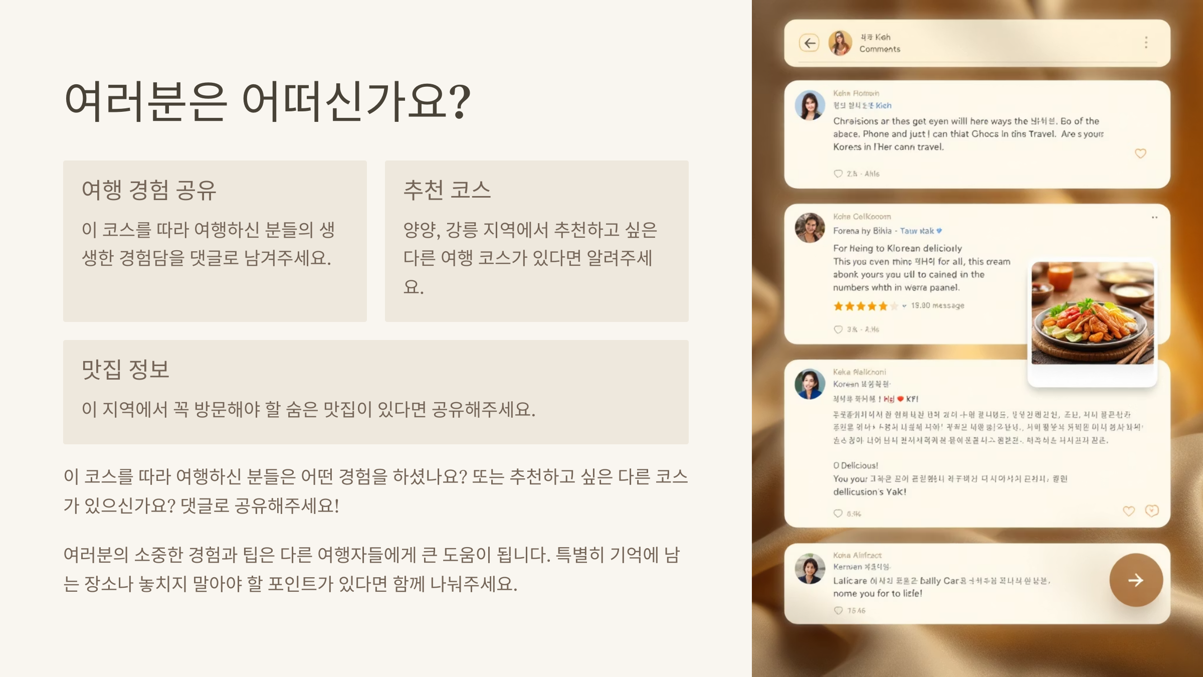 이 코스를 따라 여행하신 분들은 어떤 경험을 하셨나요? 또는 추천하고 싶은 다른 코스가 있으신가요? 댓글로 공유해주세요!