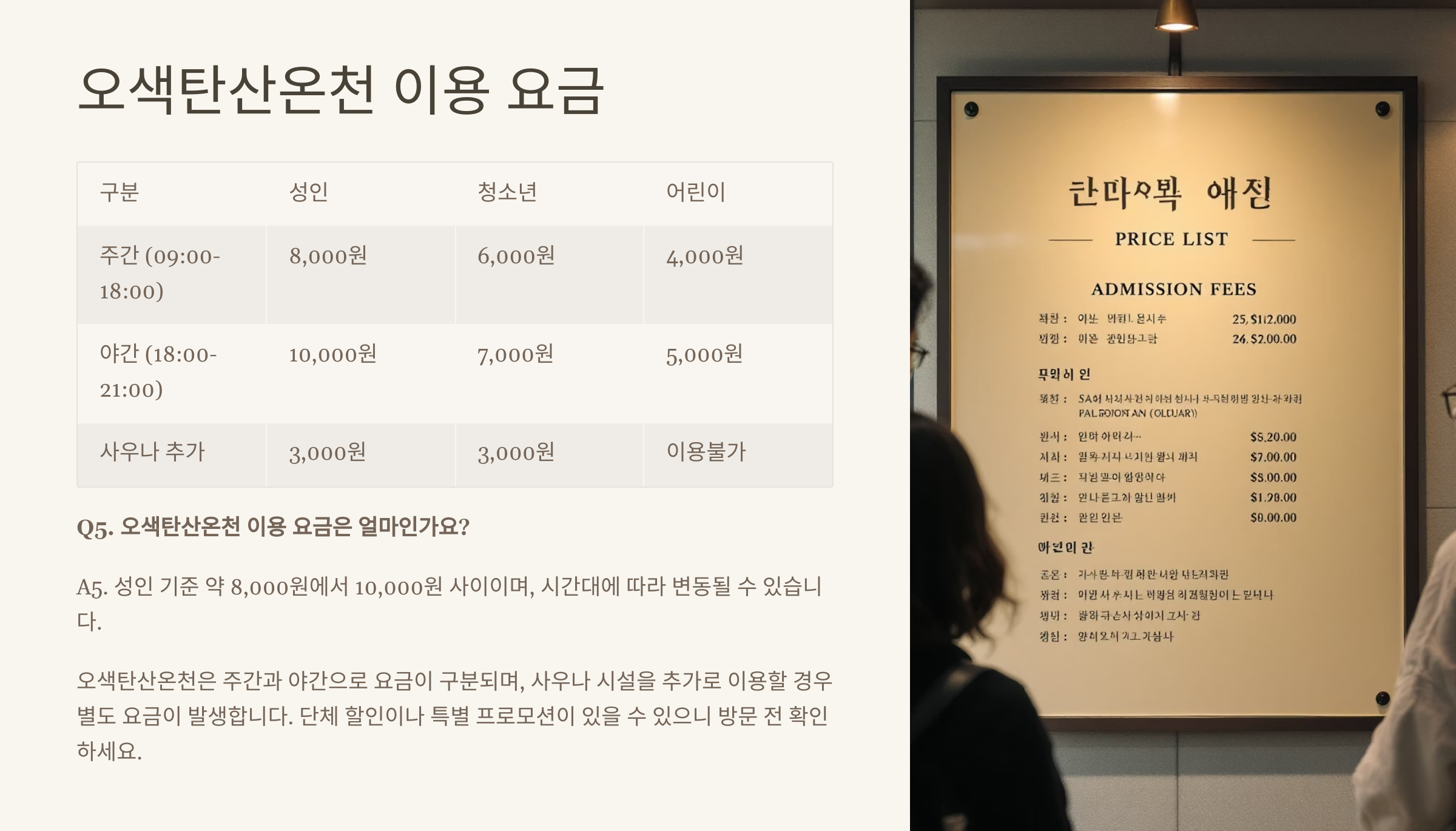 Q5. 오색탄산온천 이용 요금은 얼마인가요?