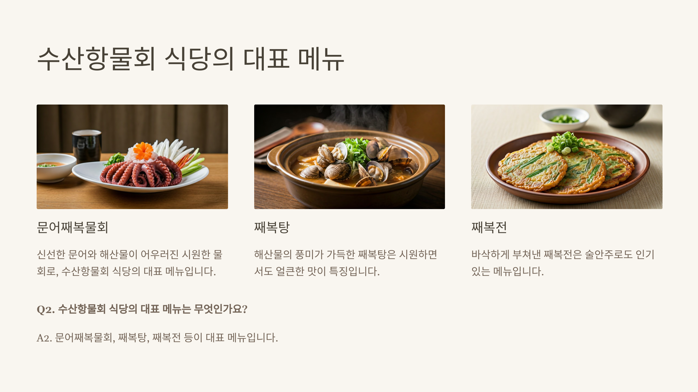 Q2. 수산항물회 식당의 대표 메뉴는 무엇인가요?