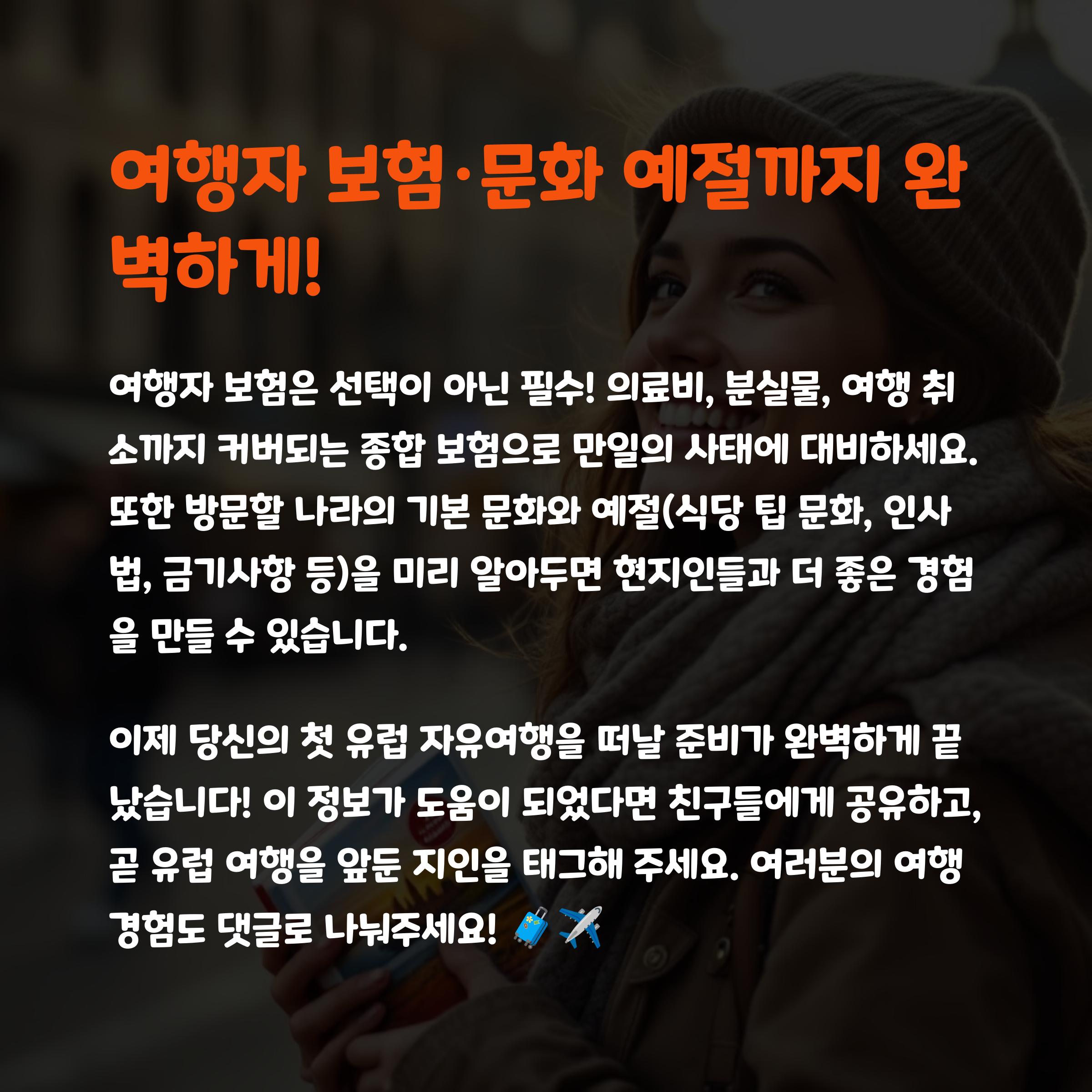 혼자 떠나는 유럽 여행, 두려워하지 마세요. 철저한 사전 준비와 정보만 있으면 누구나 안전하고 특별한 경험을 만들 수 있습니다.