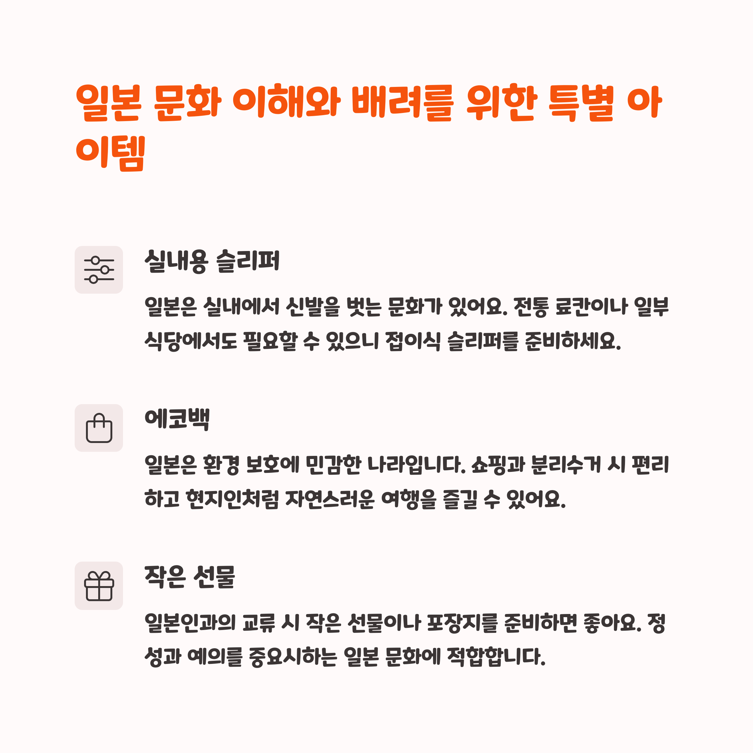 일본 특유의 문화에 맞춘 준비물