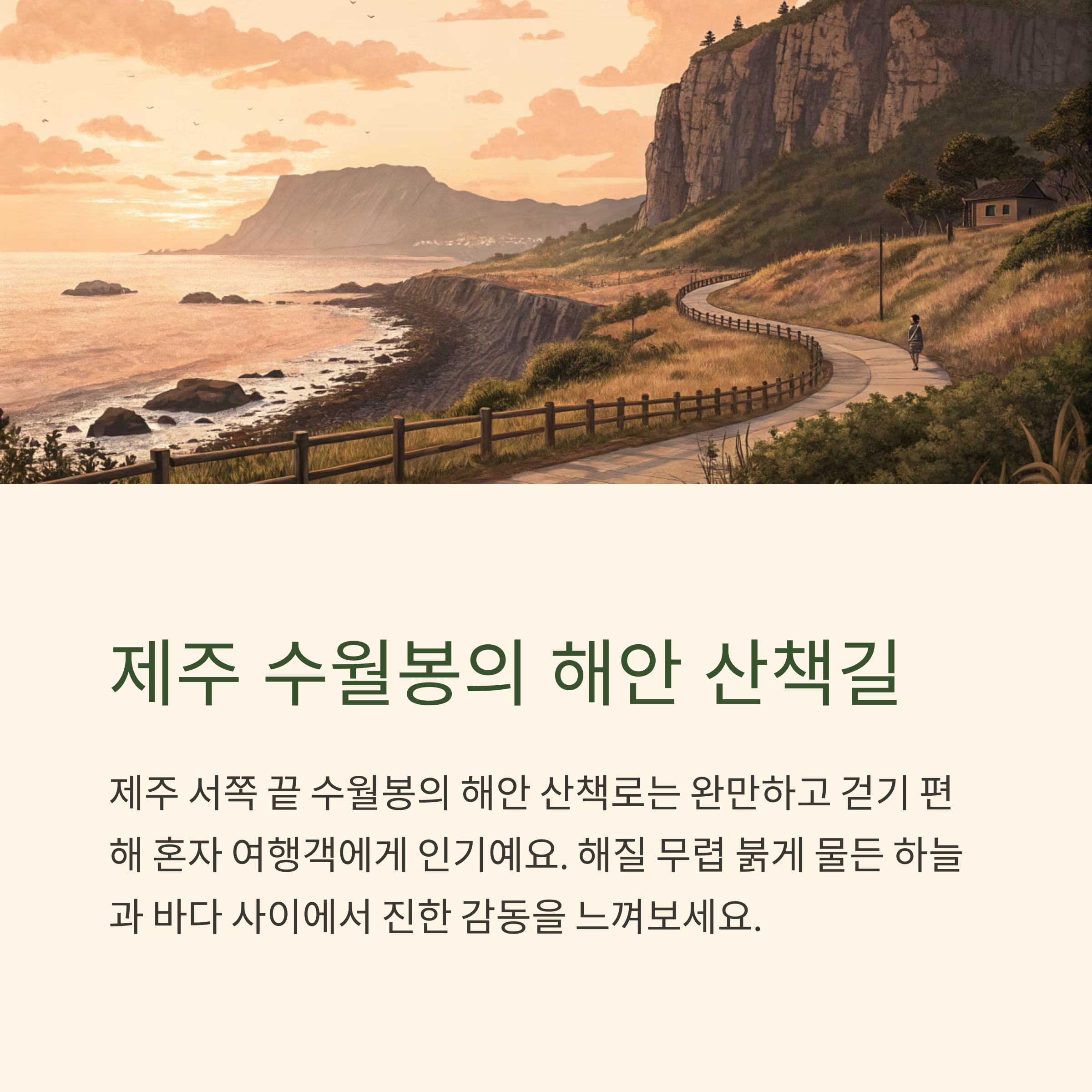 제주의 서쪽 끝, 수월봉에서 이어지는 해안 산책로는 바다와 절벽, 바람이 어우러진 감성 코스입니다.