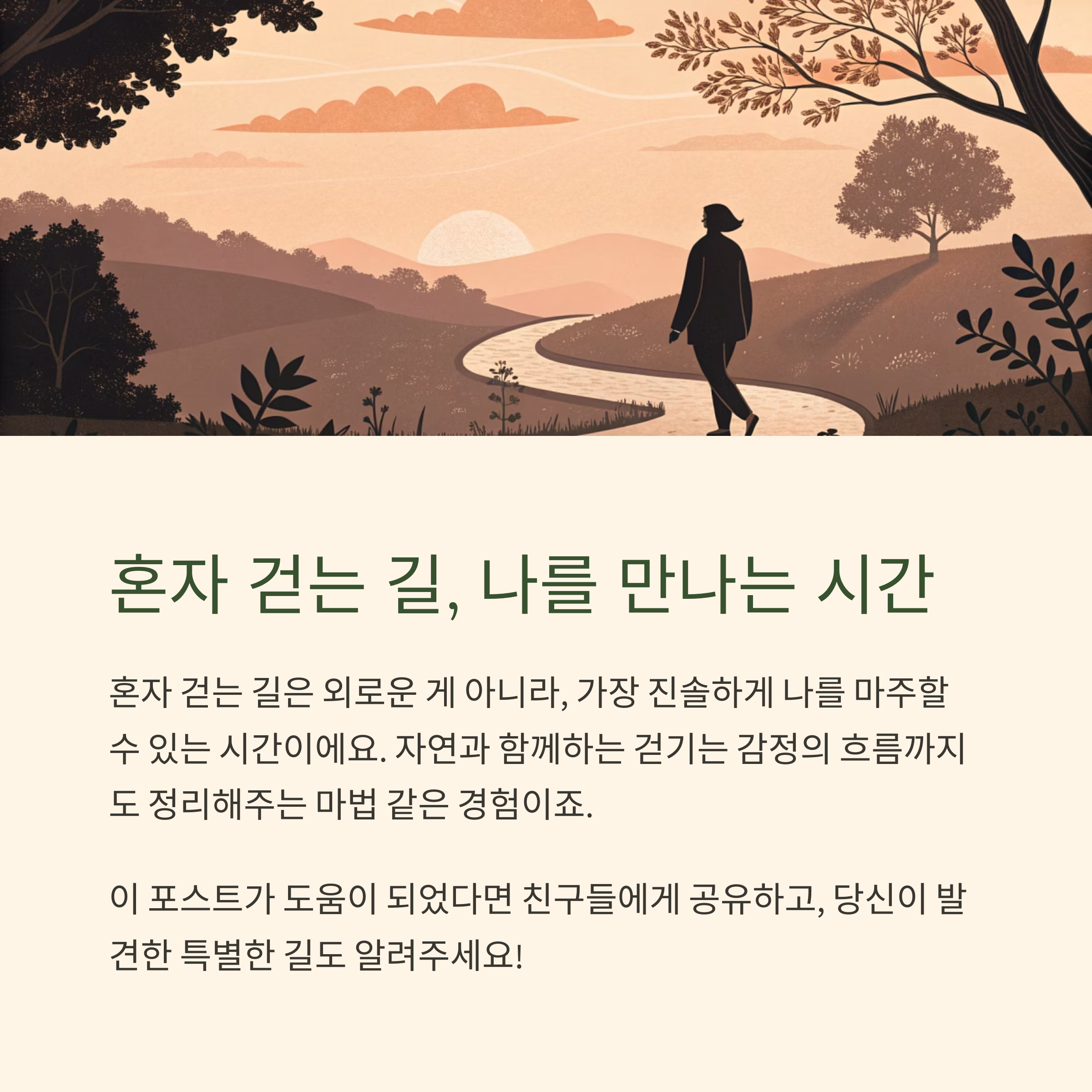 혼자 걷는 길이 외로운 게 아니라, 가장 진솔하게 나를 마주할 수 있는 시간이었어요.