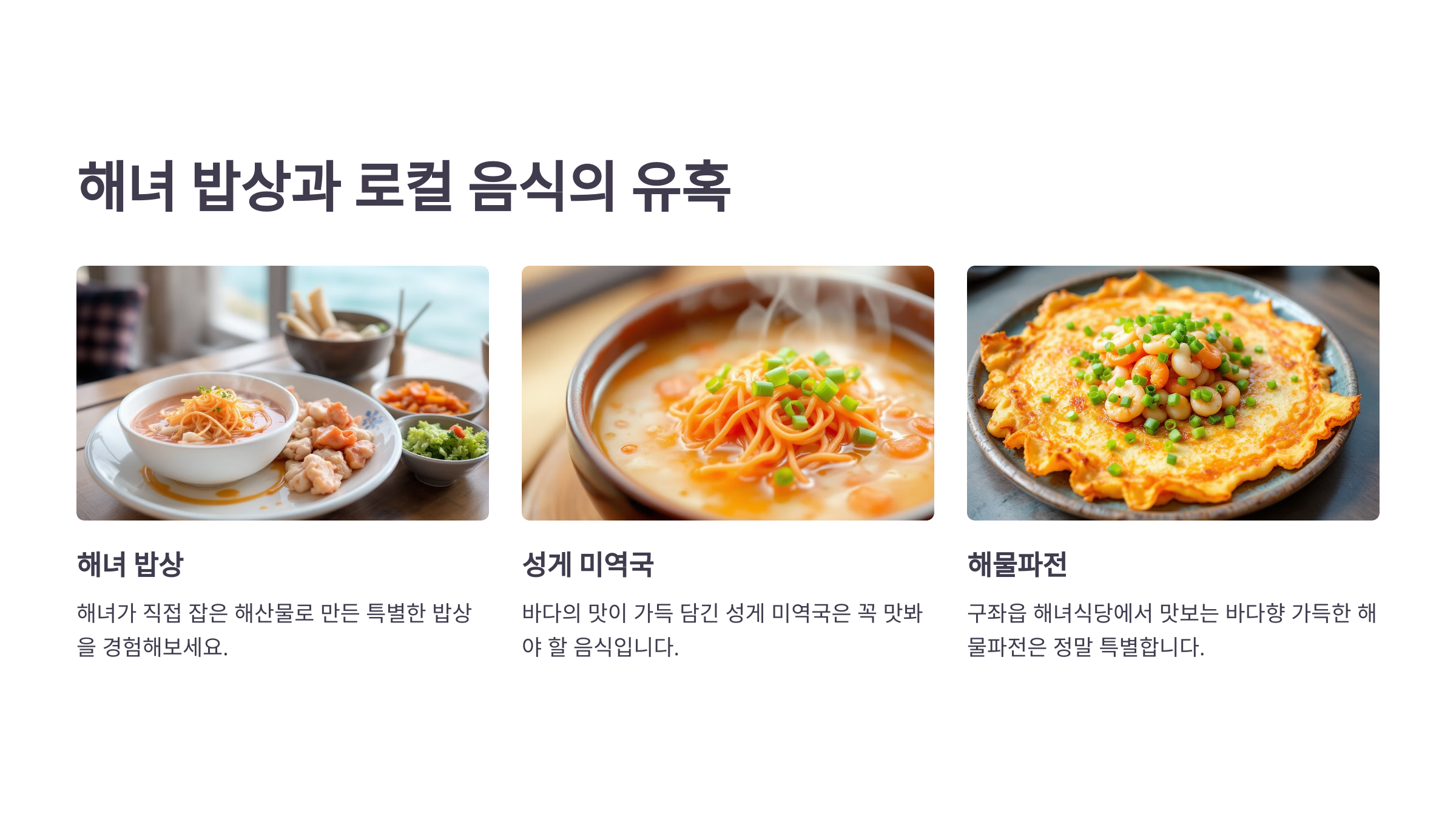 - 해녀 밥상과 로컬 음식의 유혹