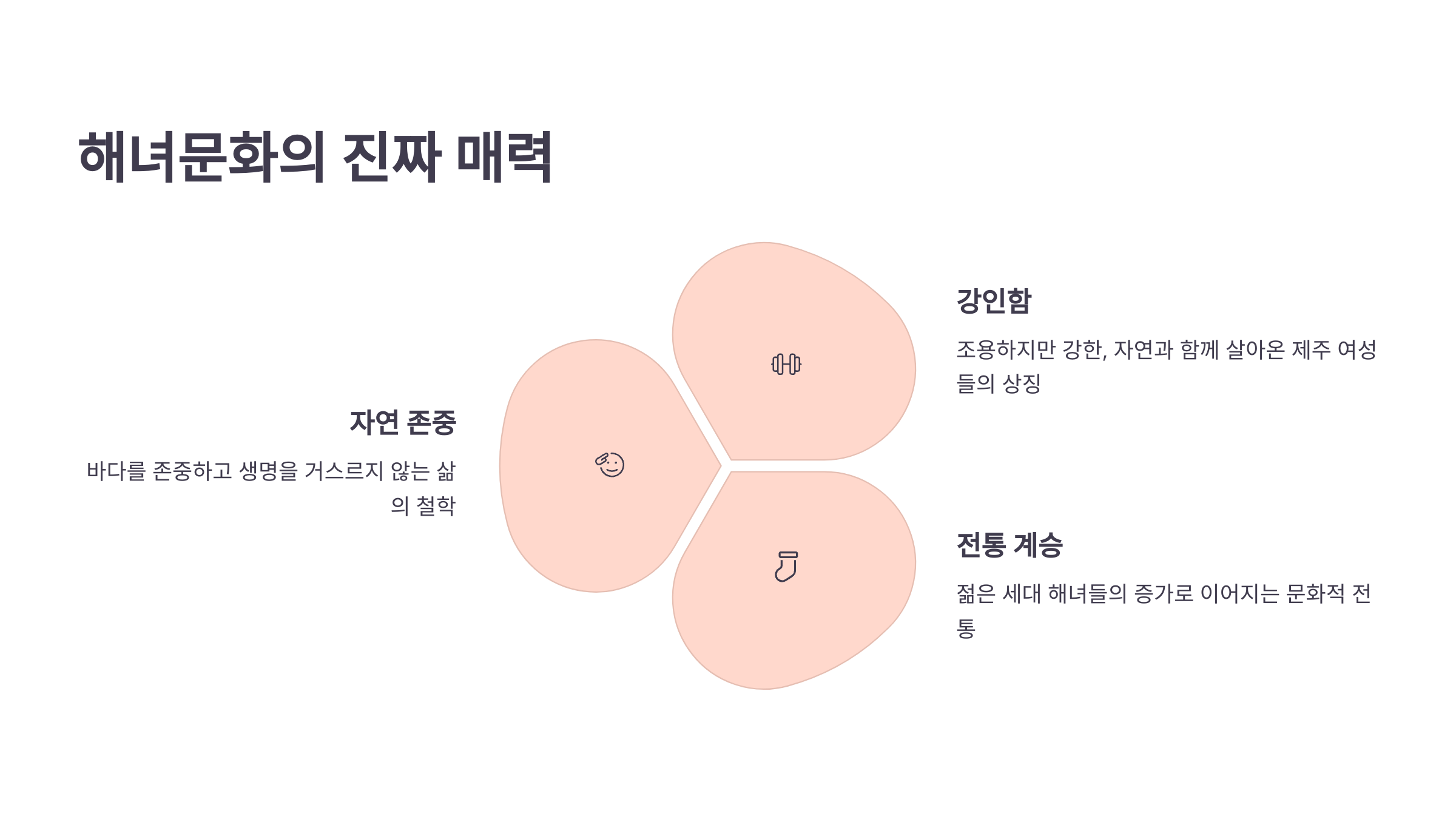 해녀는 단순히 바다에서 일하는 분들이 아니에요. 바다를 존중하고, 생명을 거스르지 않는 삶을 살아온 제주 여성들의 상징입니다. 실제로 해녀 체험을 하면서 느낀 건, 물질 기술보다 더 큰 감동은 그들의 눈빛이었어요. 조용하지만 강한, 자연과 함께 살아온 흔적이 느껴졌거든요. 요즘은 젊은 세대 해녀들도 늘고 있어서 문화의 전통이 이어지는 모습도 정말 감동이에요.