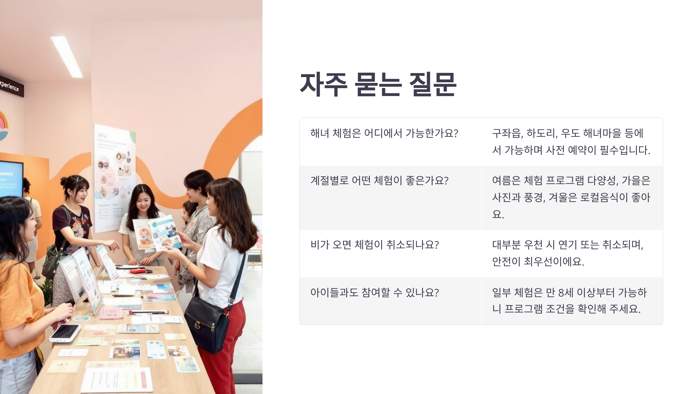 Q. 해녀 체험은 어디에서 가능한가요?