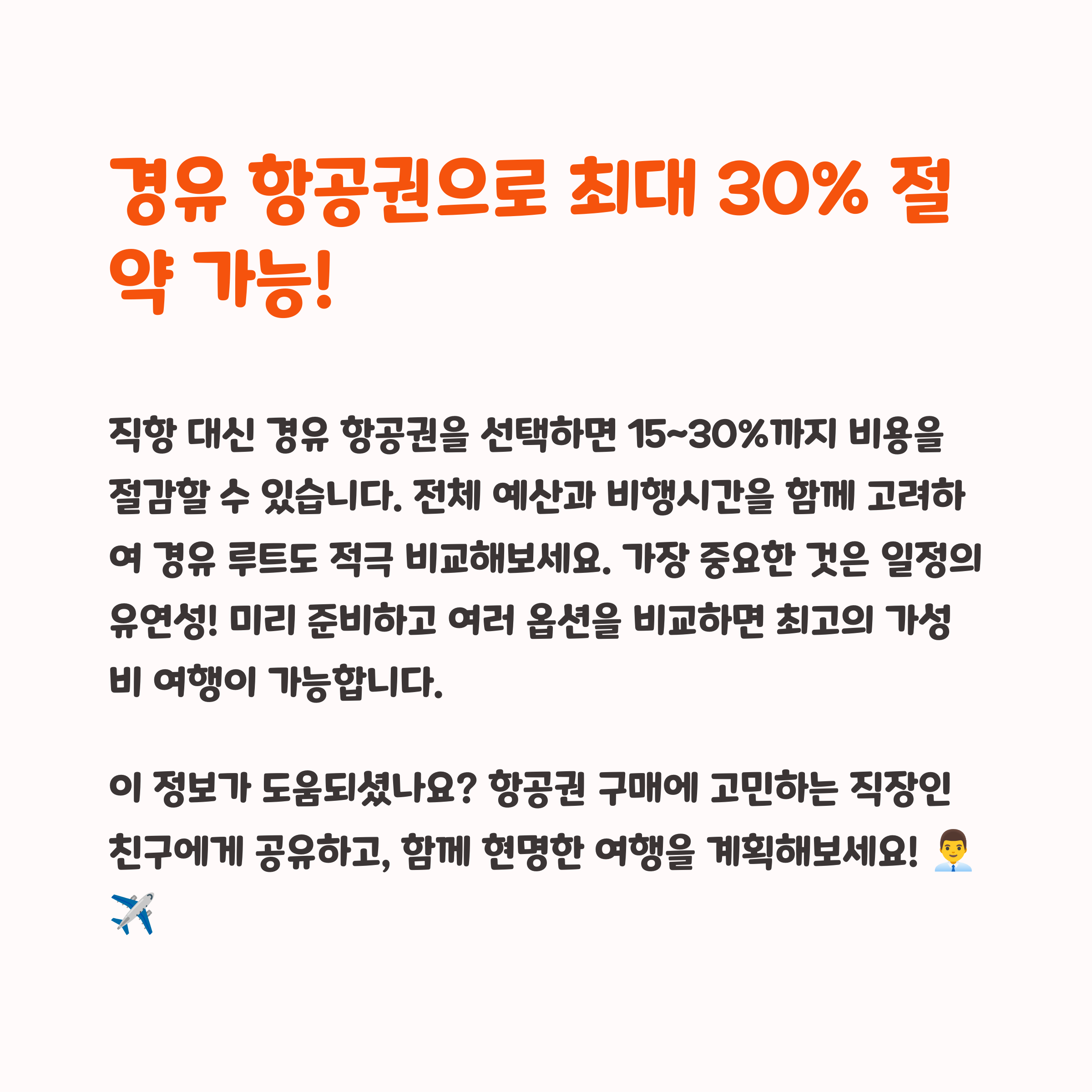 직항보다 가격이 훨씬 저렴할 수 있고, 일정에 여유가 있다면 경유형 LCC 루트도 알차게 이용할 수 있습니다.