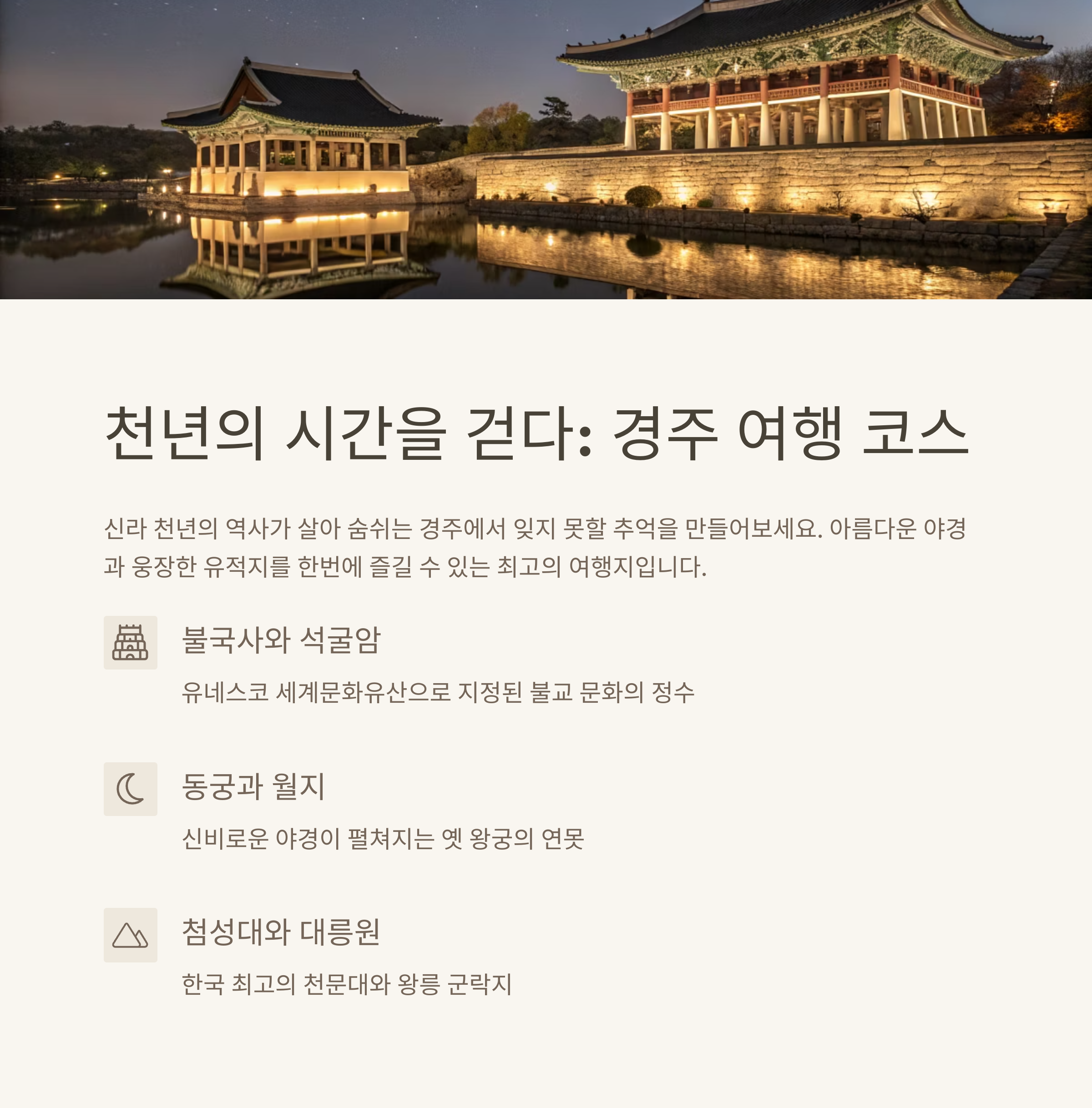 이번 안내에서는 경주의 대표 유적지와 감성적인 야경 명소를 하루에 즐길 수 있는 최적의 일정을 소개합니다.
