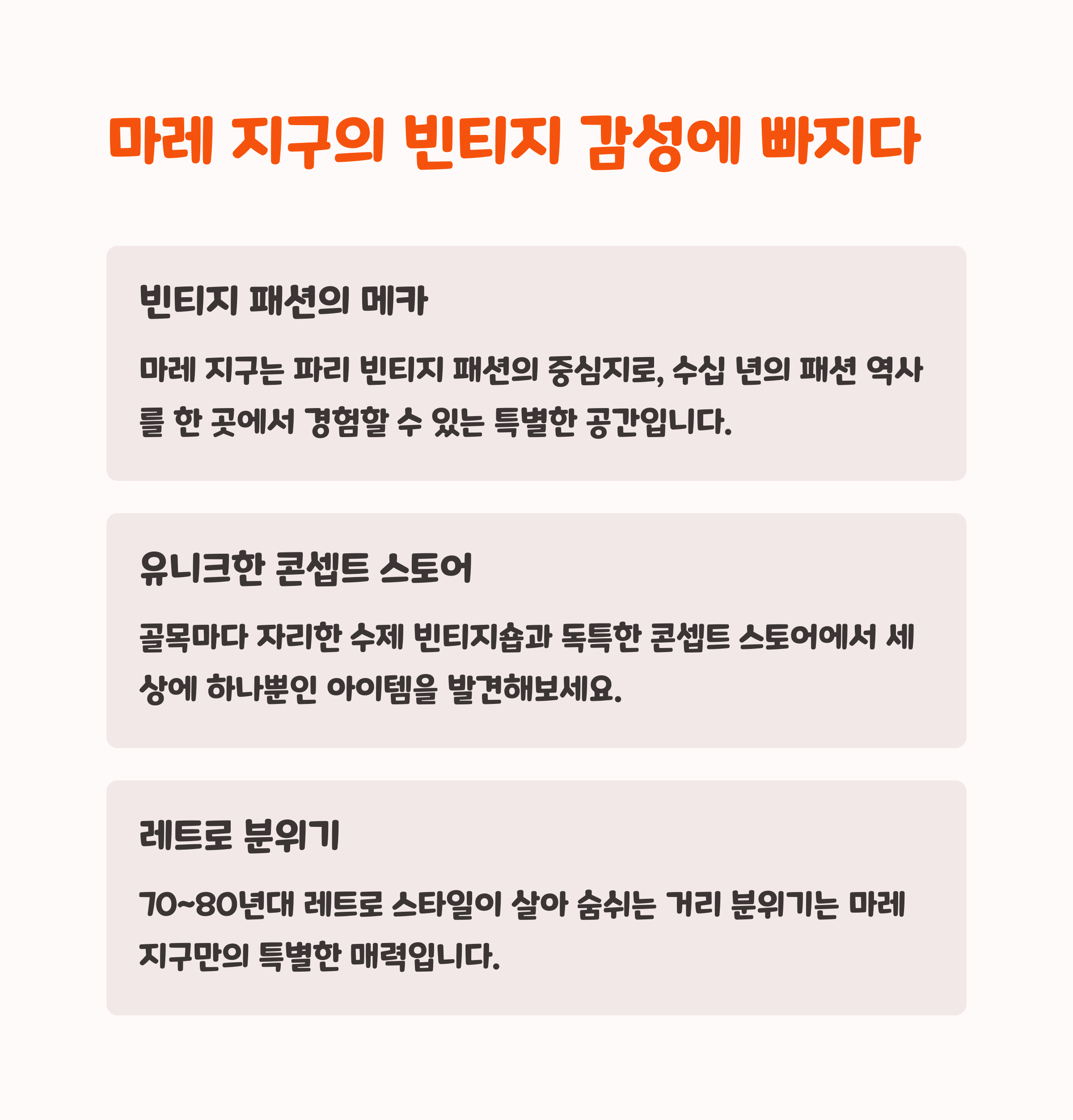 마레 지구의 빈티지 감성 - 개성 넘치는 거리의 분위기