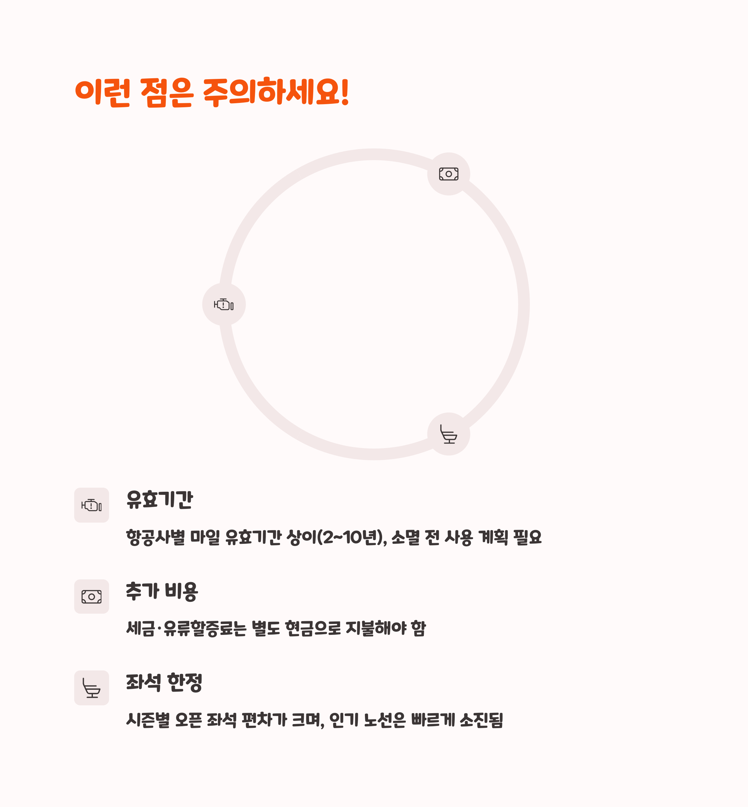 | 카드 포인트 전환 등 다양한 적립 루트 | 장거리 노선에서 가치가 더욱 극대화됨 | 마일리지 유효기간 만료 전에 꼭 사용 |