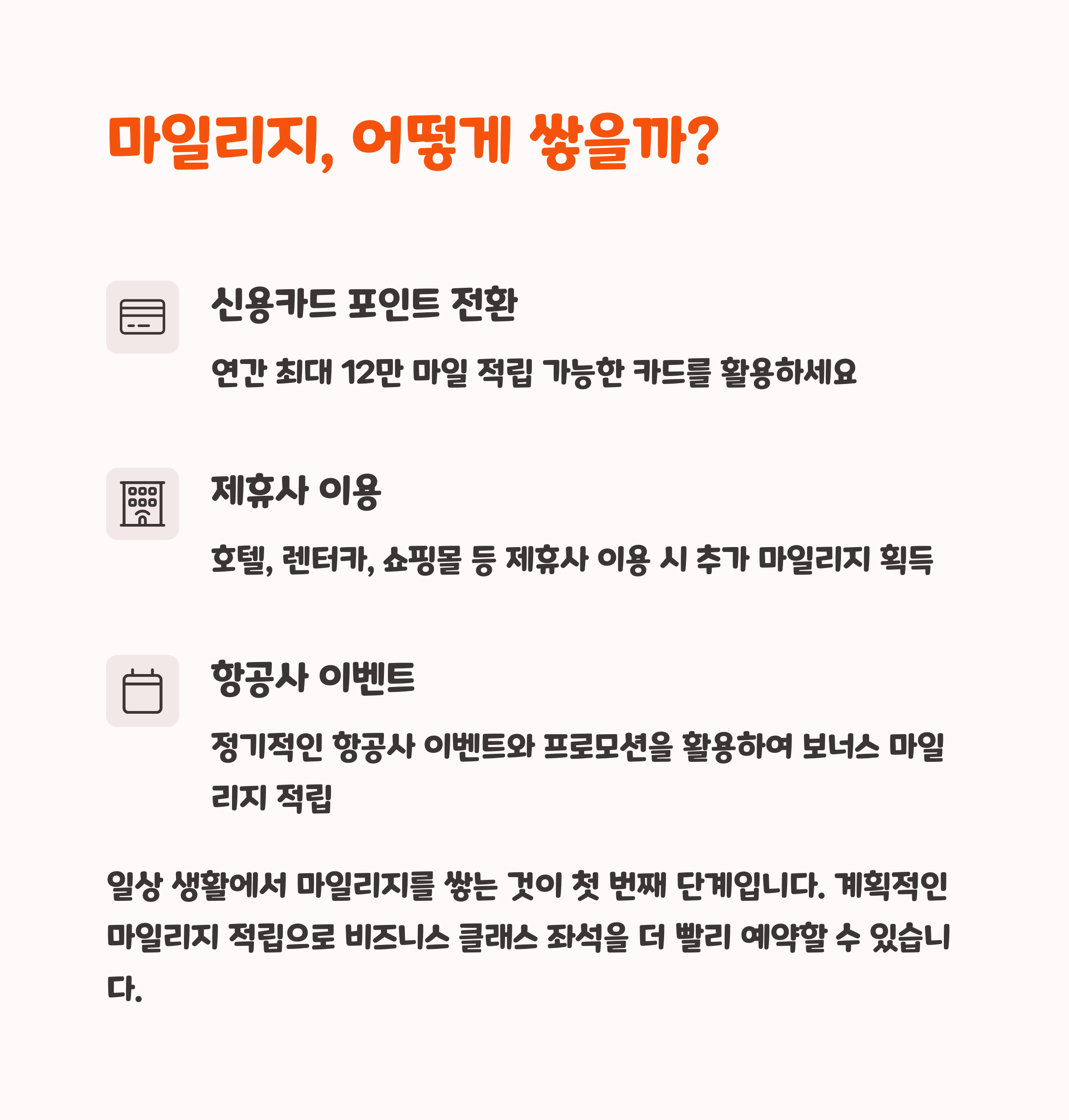 | 핵심 포인트 | 마일리지로 프리미엄 좌석을 저렴하게 이용하기 |