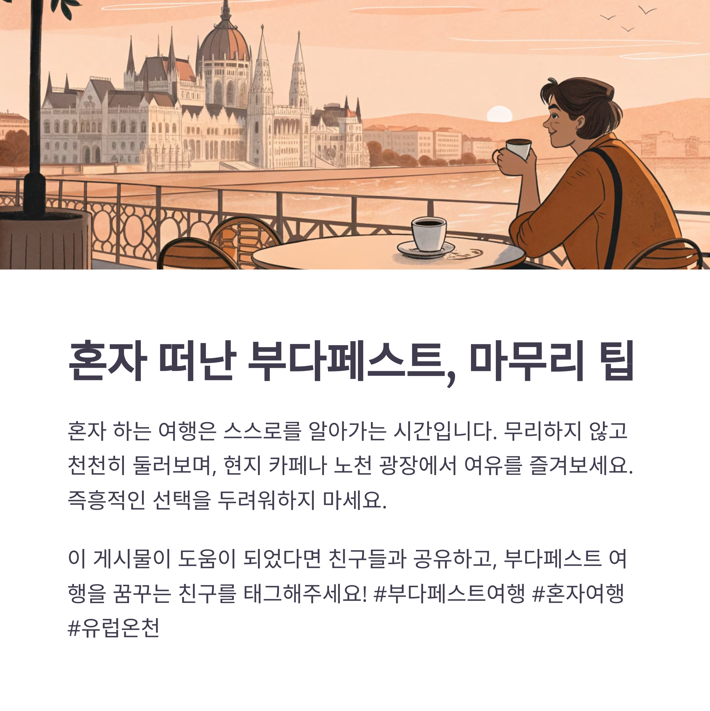 "혼자라도 부다페스트를 꽉 채워 느낄 수 있는 코스"입니다.