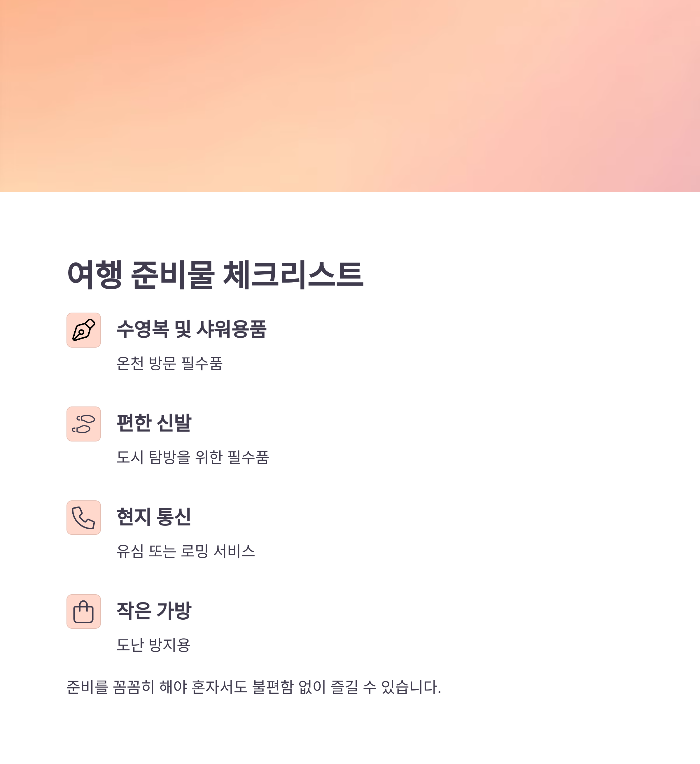 - 혼자서도 편하게 즐길 수 있는 온천 문화