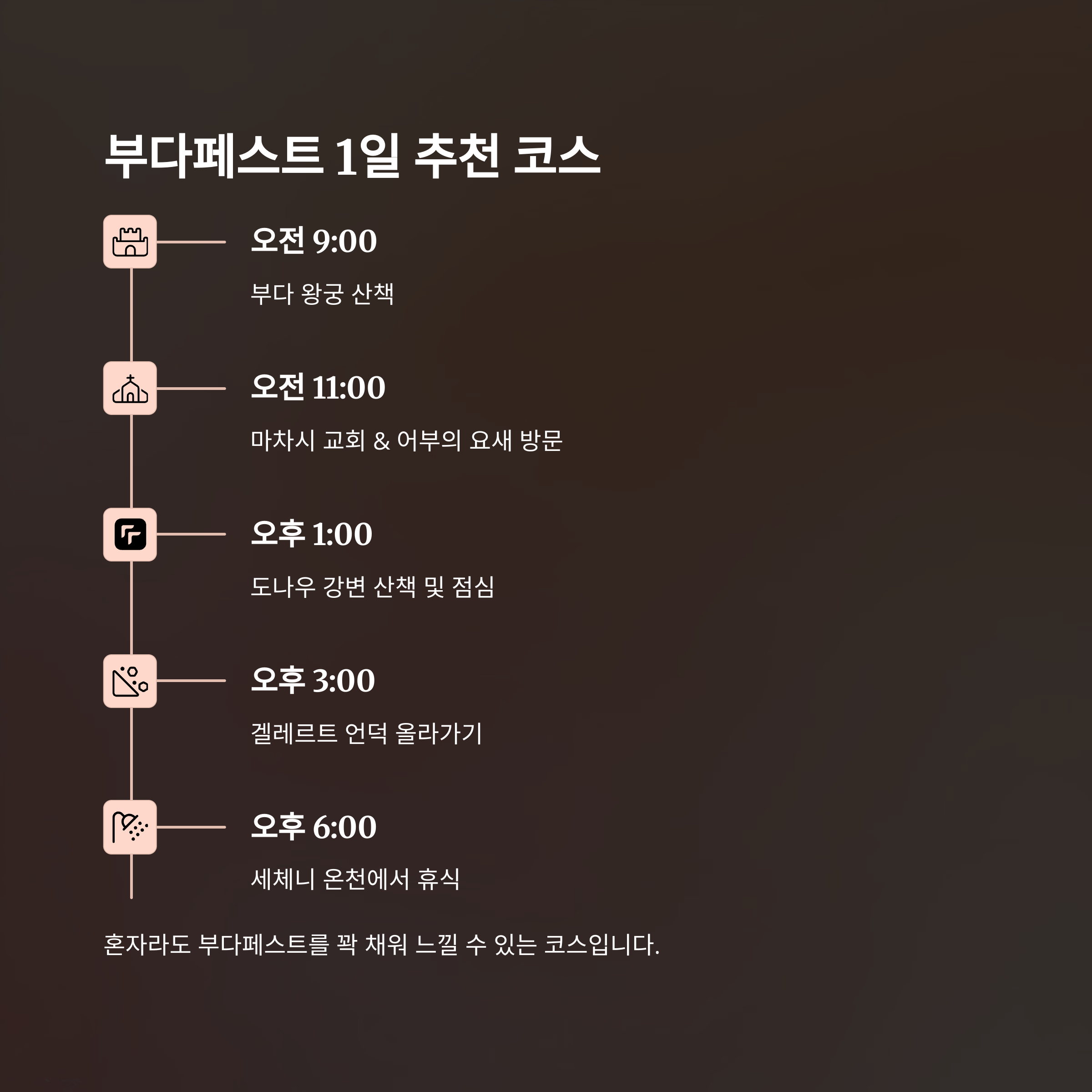 "혼자라도 부다페스트를 꽉 채워 느낄 수 있는 코스"입니다.