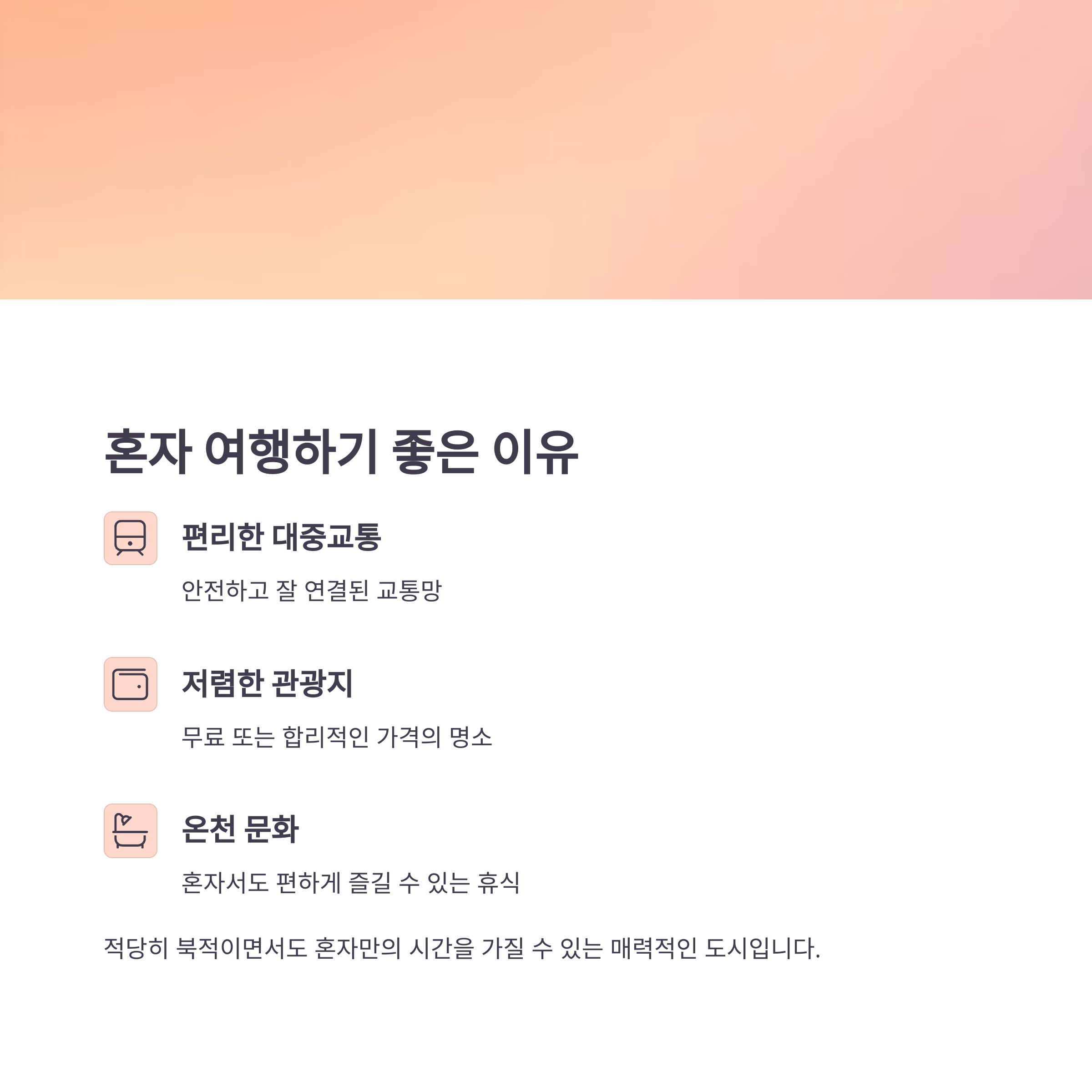 - 혼자서도 편하게 즐길 수 있는 온천 문화