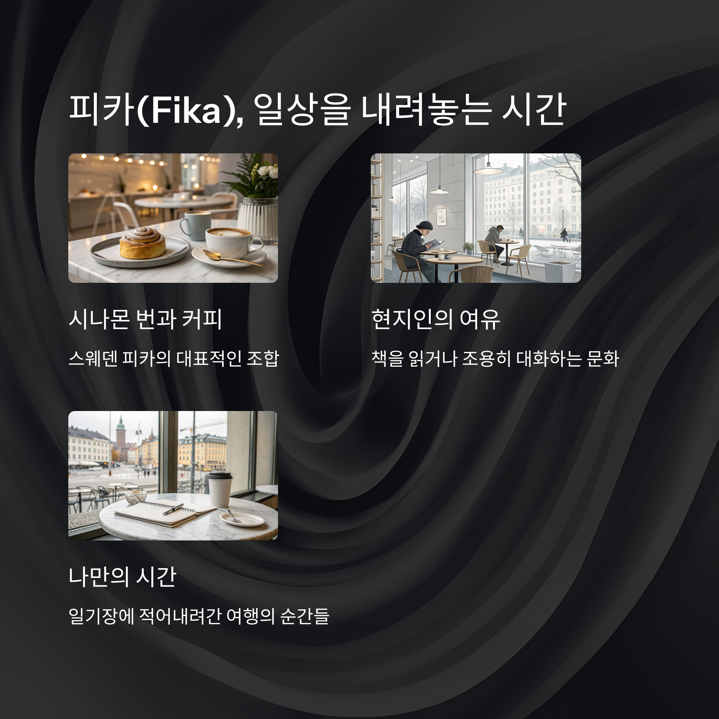 잠시 일상을 내려놓는 피카(Fika) 문화를 가집니다.