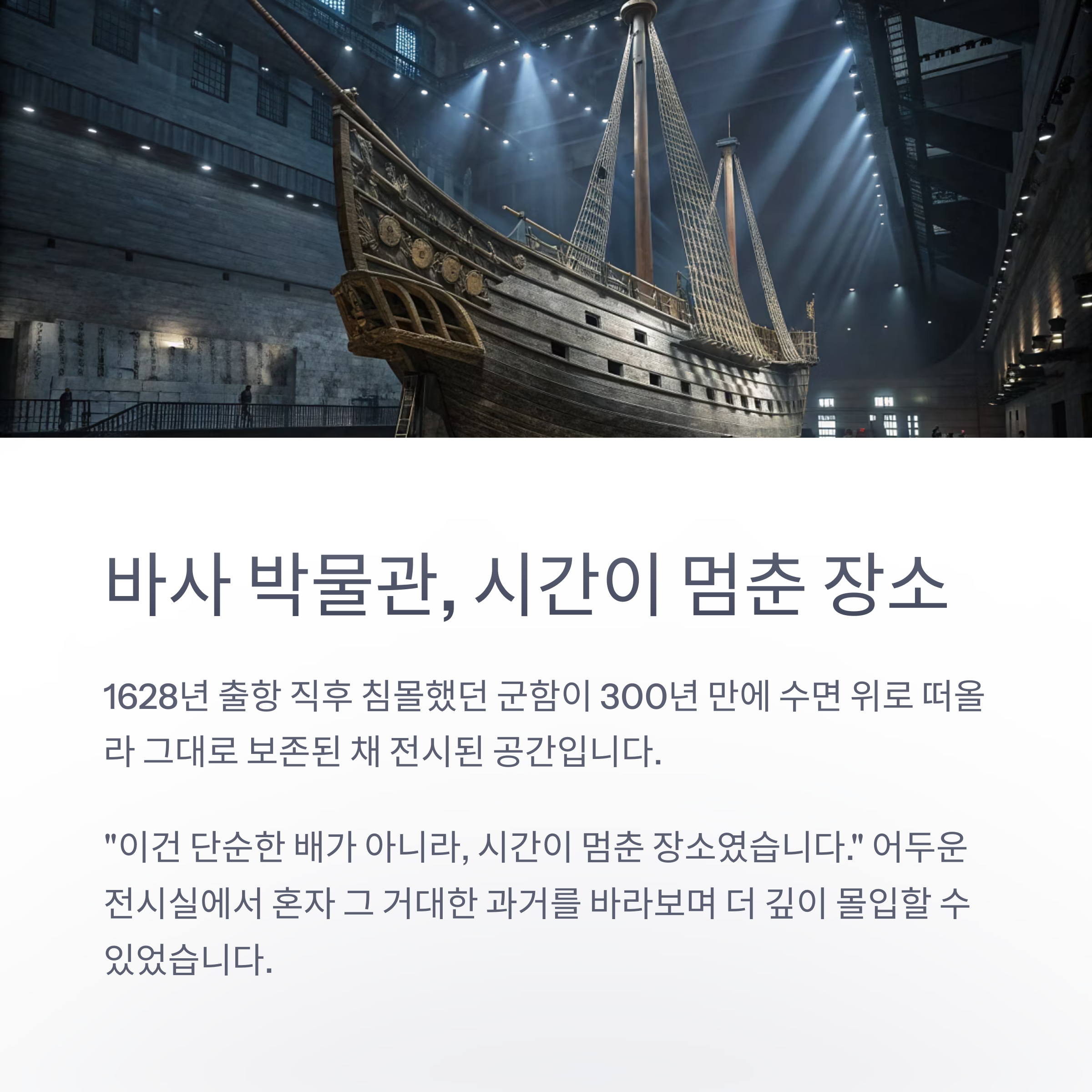 | 바사 박물관 | 하 | 웅장, 시원 | 대형 선박 관람의 충격 |