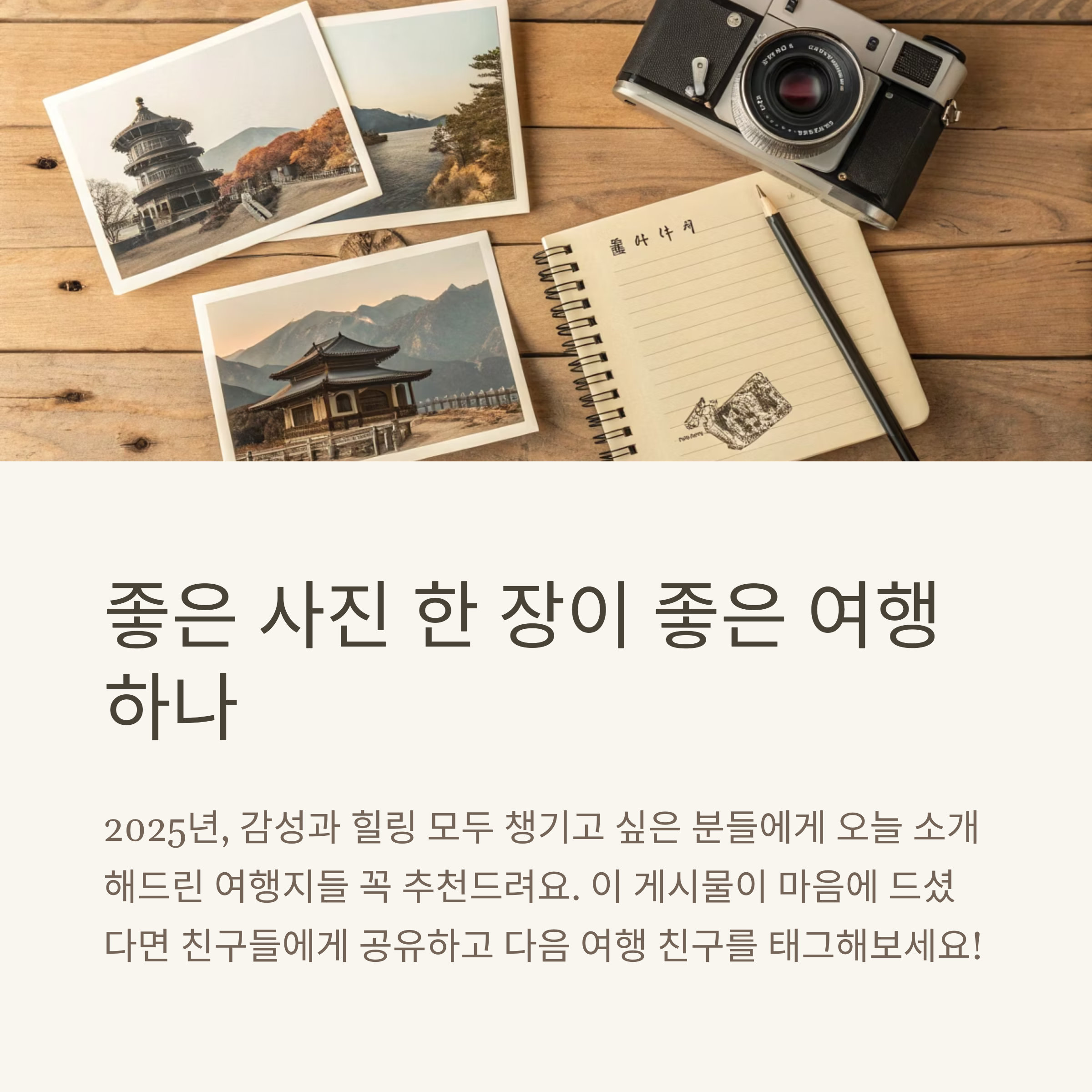 2025년, 감성과 힐링 모두 챙기고 싶은 분들에게 오늘 소개해드린 여행지들 꼭 추천드려요.