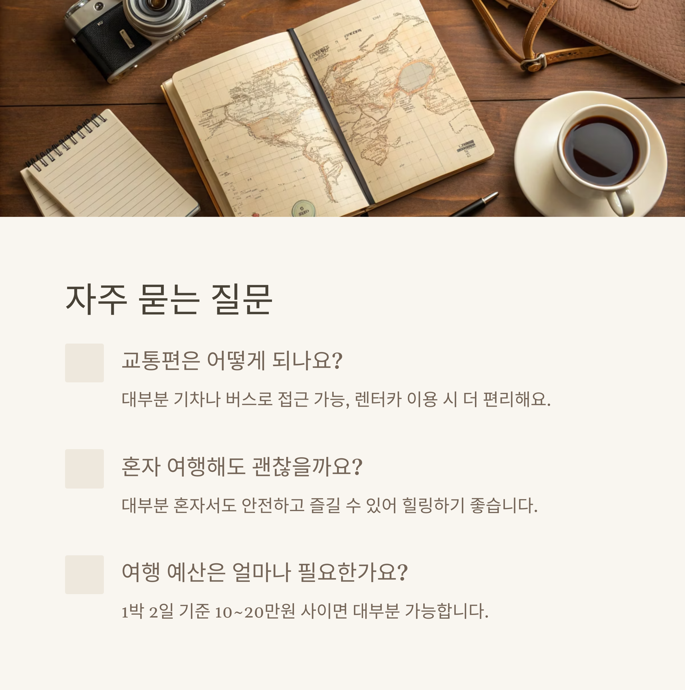 여러분의 여행 이야기가 다음 계획에 큰 도움이 될 거예요.