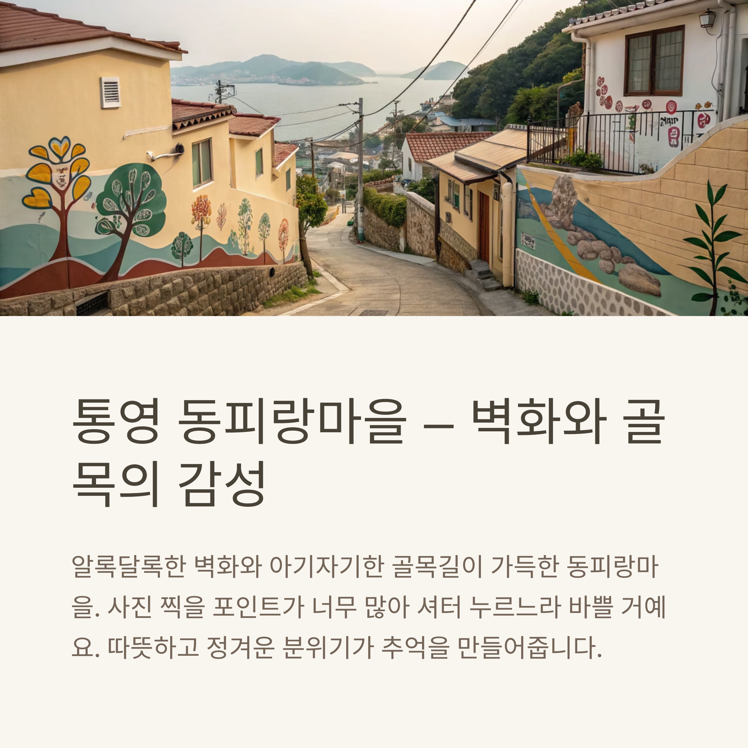 5. 통영 동피랑마을 – 벽화와 골목의 감성
