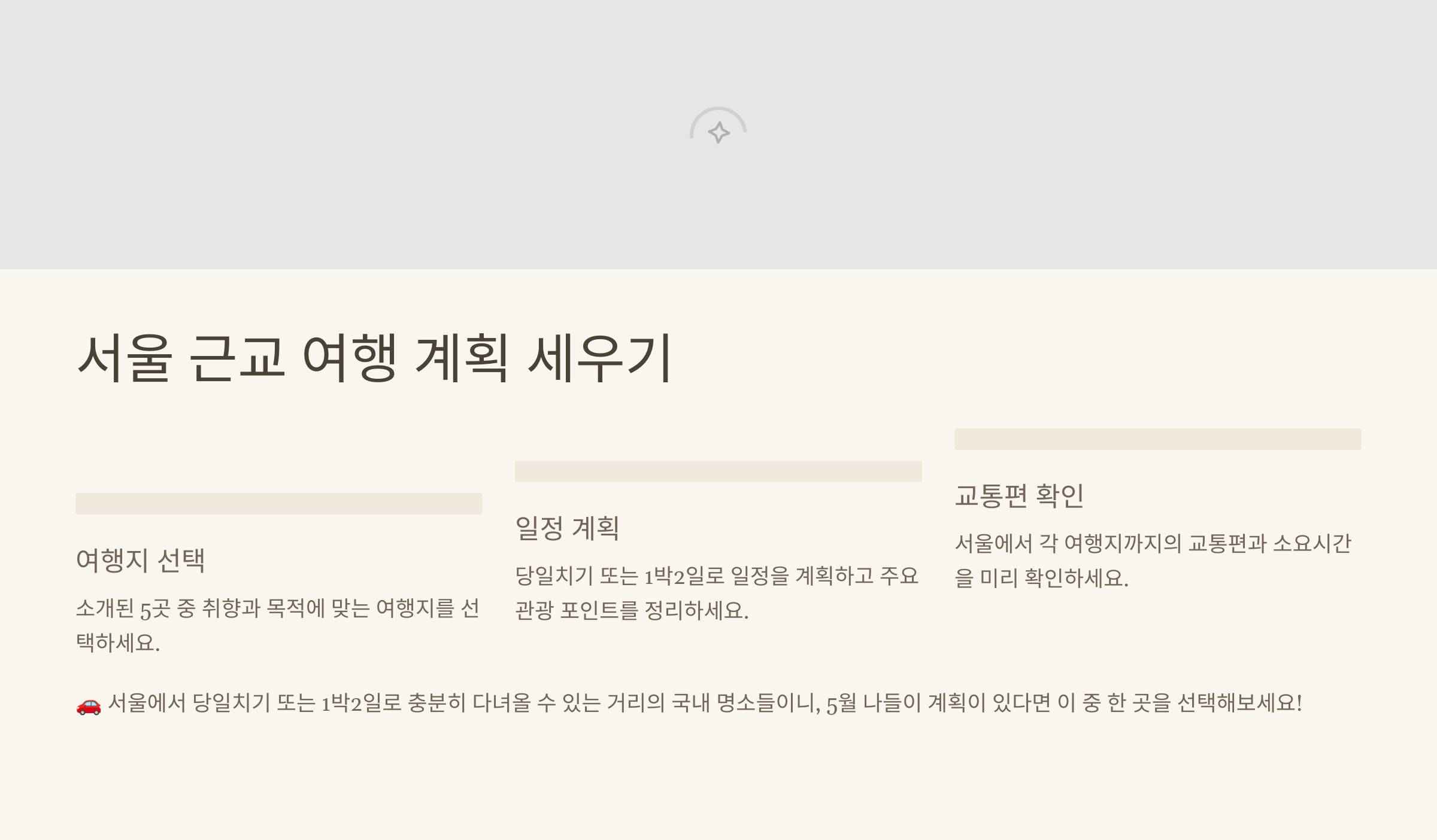 🚗 서울에서 당일치기 또는 1박2일로 충분히 다녀올 수 있는 거리의 국내 명소들이니, 5월 나들이 계획이 있다면 이 중 한 곳을 선택해보세요!