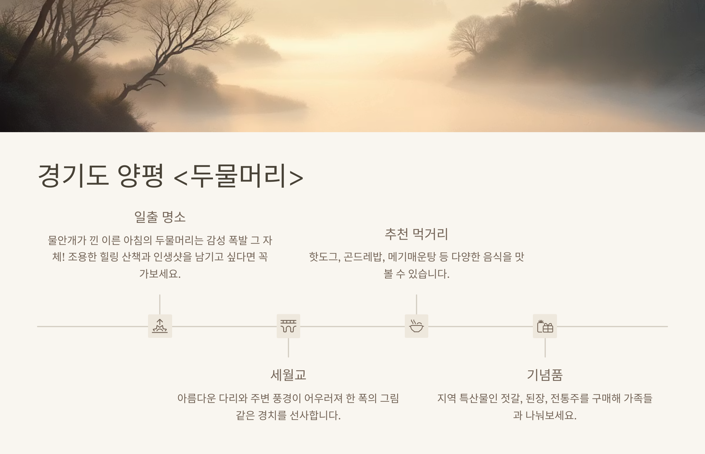 - 📌 관광 포인트: 세월교, 물안개 산책로, 일출 명소