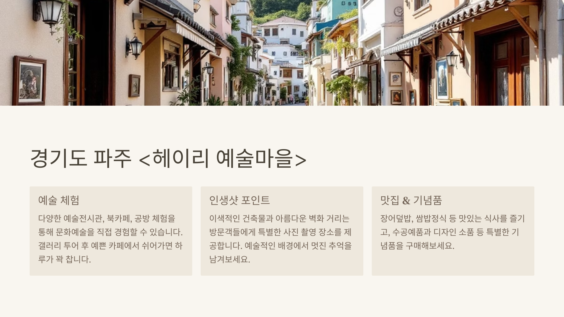 • 📌 관광 포인트: 예술전시관, 북카페, 공방 체험