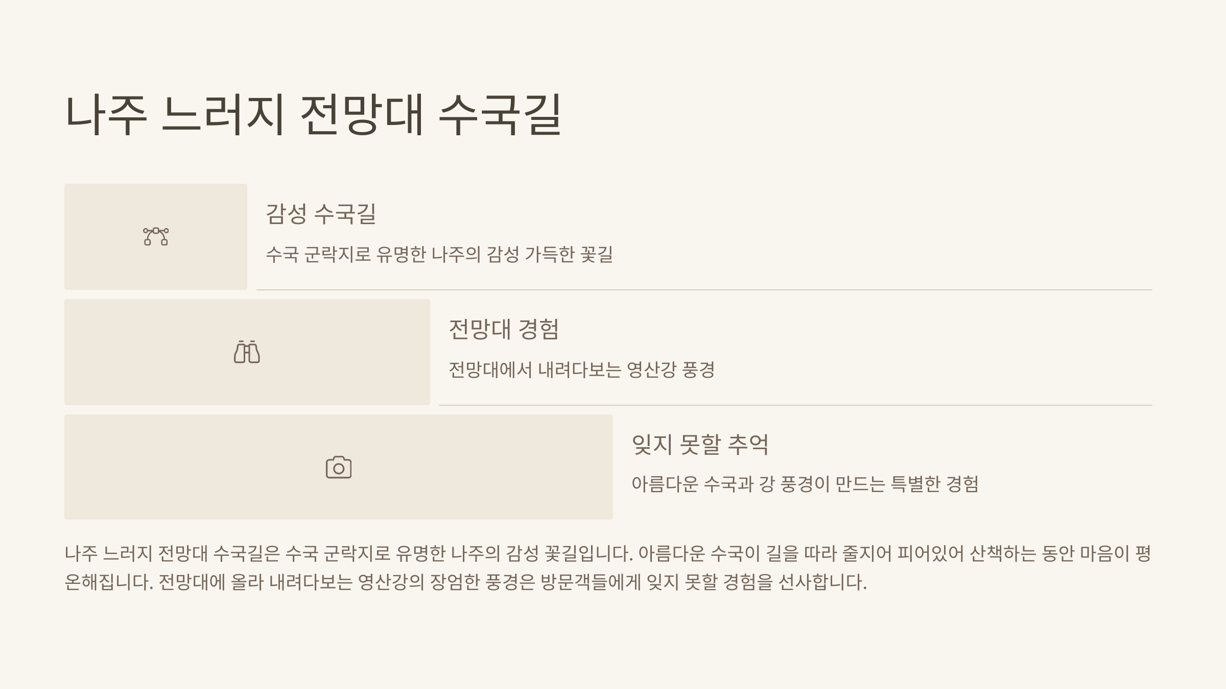 수국 군락지로 유명한 나주의 감성 꽃길! 전망대에서 내려다보는 영산강 풍경은 잊지 못할 경험.