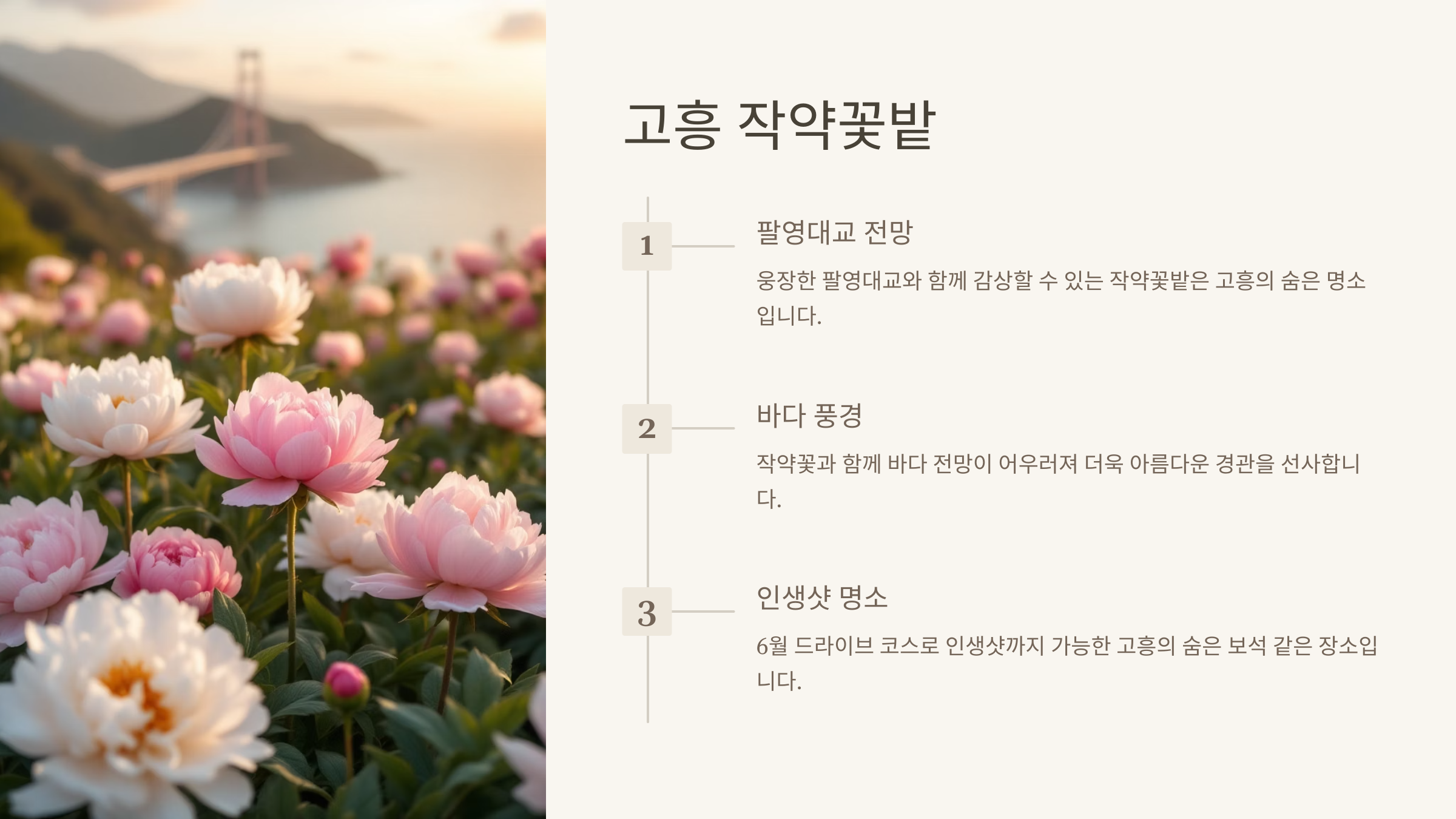 팔영대교와 바다 전망이 어우러진 고흥의 작약 명소! 6월 드라이브 코스로 인생샷까지 가능한 숨은 보석.